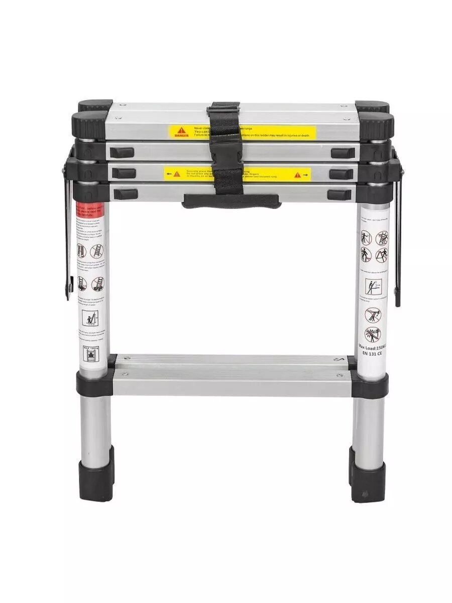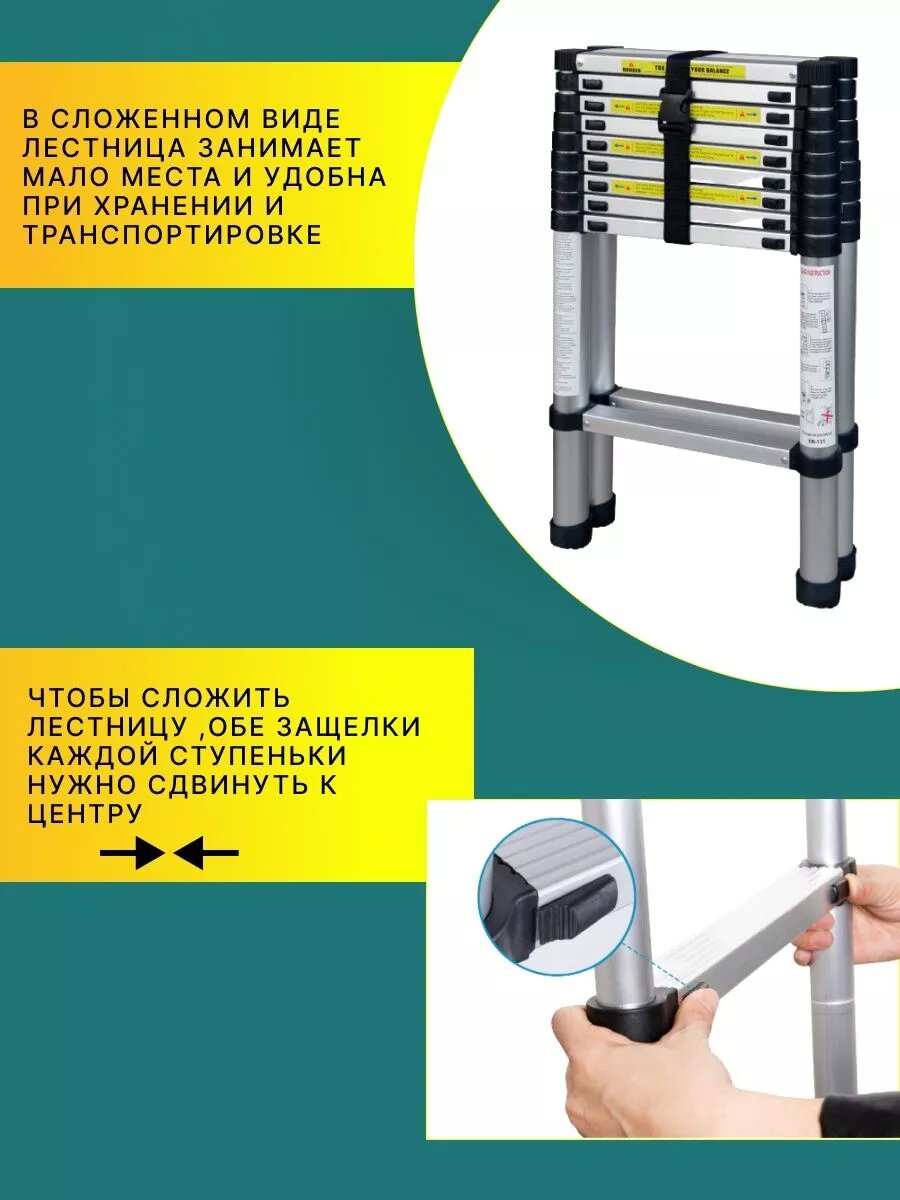 Лестница-стремянка телескопическая алюминиевая двухсекционная (2.6+2.6м,9+9ступенек, max нагрузка 150кг, вес 13.0кг)