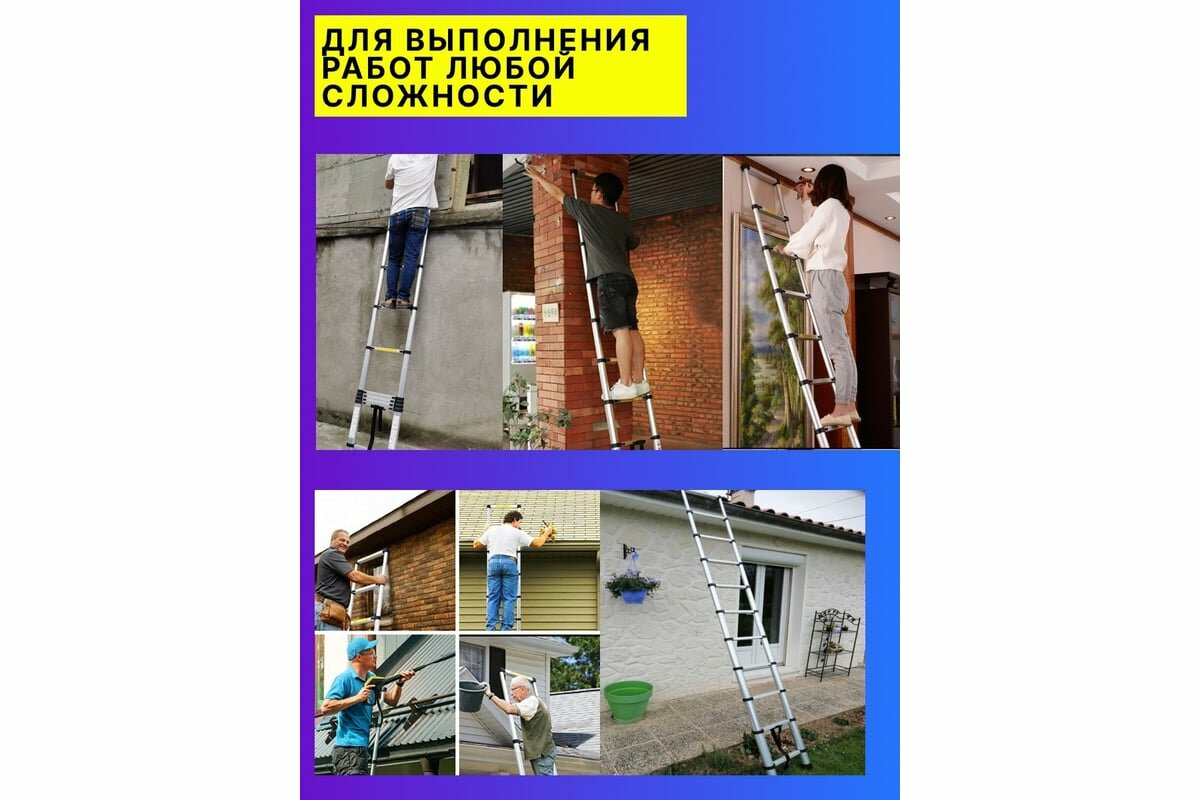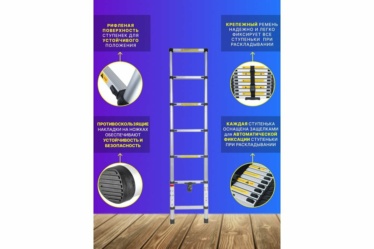 Лестница-стремянка телескопическая алюминиевая двухсекционная (2.6+2.6м,9+9ступенек, max нагрузка 150кг, вес 13.0кг)
