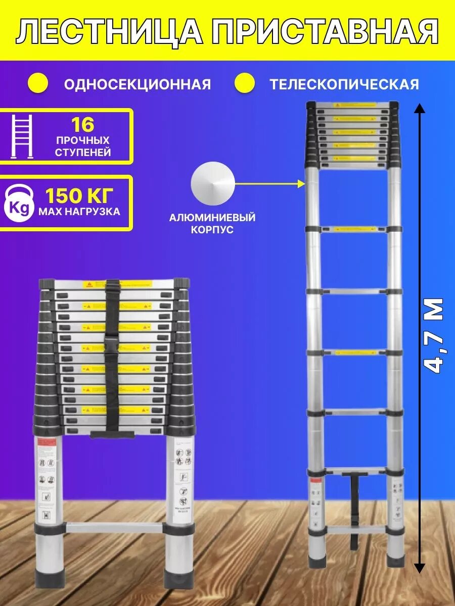 Купить Лестница телескопическая алюминиевая односекционная (4.7м,16ступенек, max нагрузка 150кг, вес 13.0кг) Forsage F-UP470
