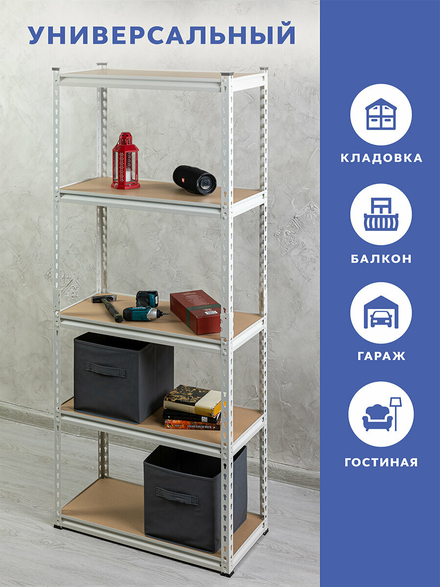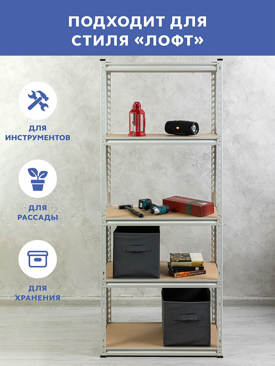 Стеллаж металлический безболтовой GASTRORAG GR-003-3, 5 полок МДФ, размеры 180х90х40 см, этажерка для кухни, мебель лофт, система хранения для дома, дачи и гаража