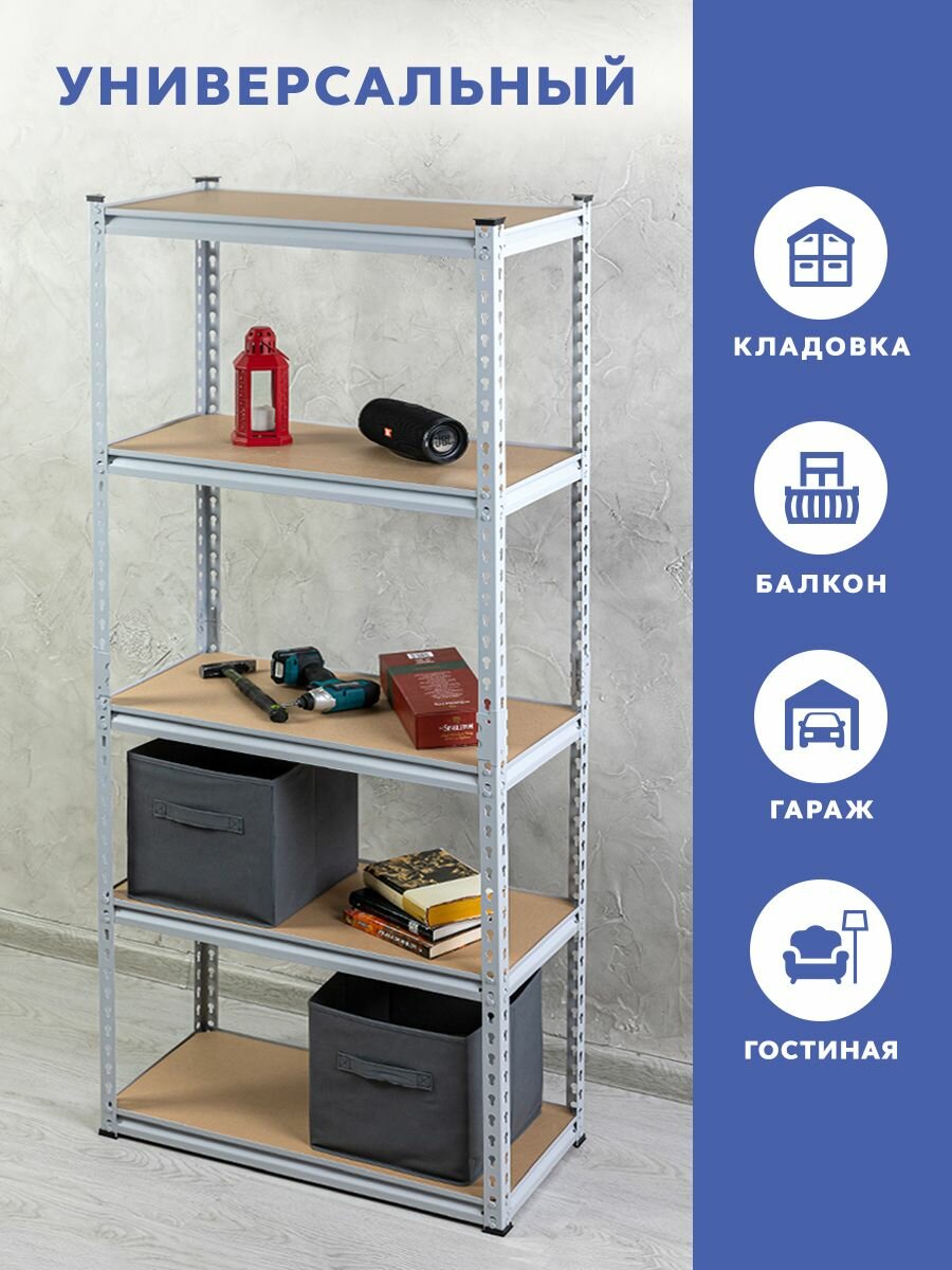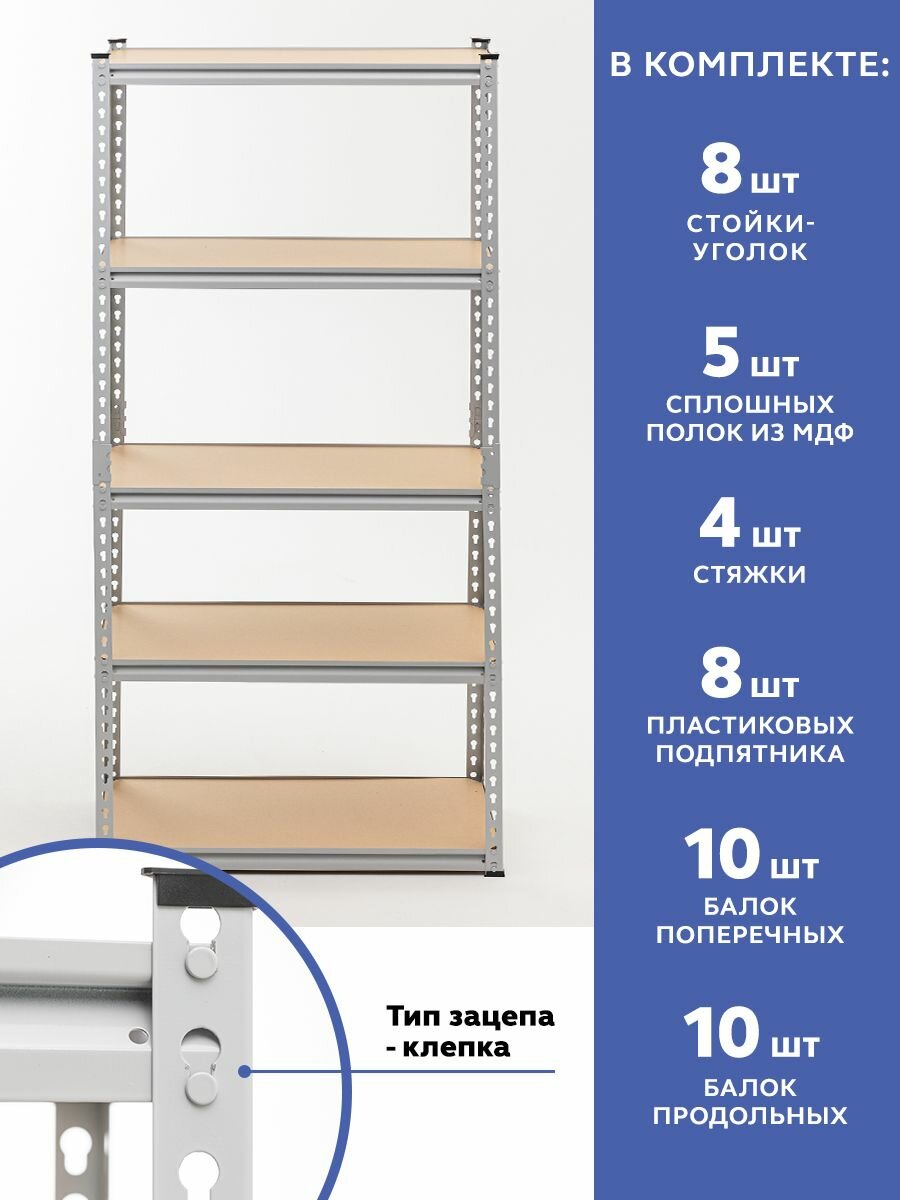 Стеллаж металлический безболтовой GASTRORAG GR-003-2, 5 полок МДФ, размеры 180х90х40 см, этажерка для кухни, мебель лофт, система хранения для дома, дачи и гаража
