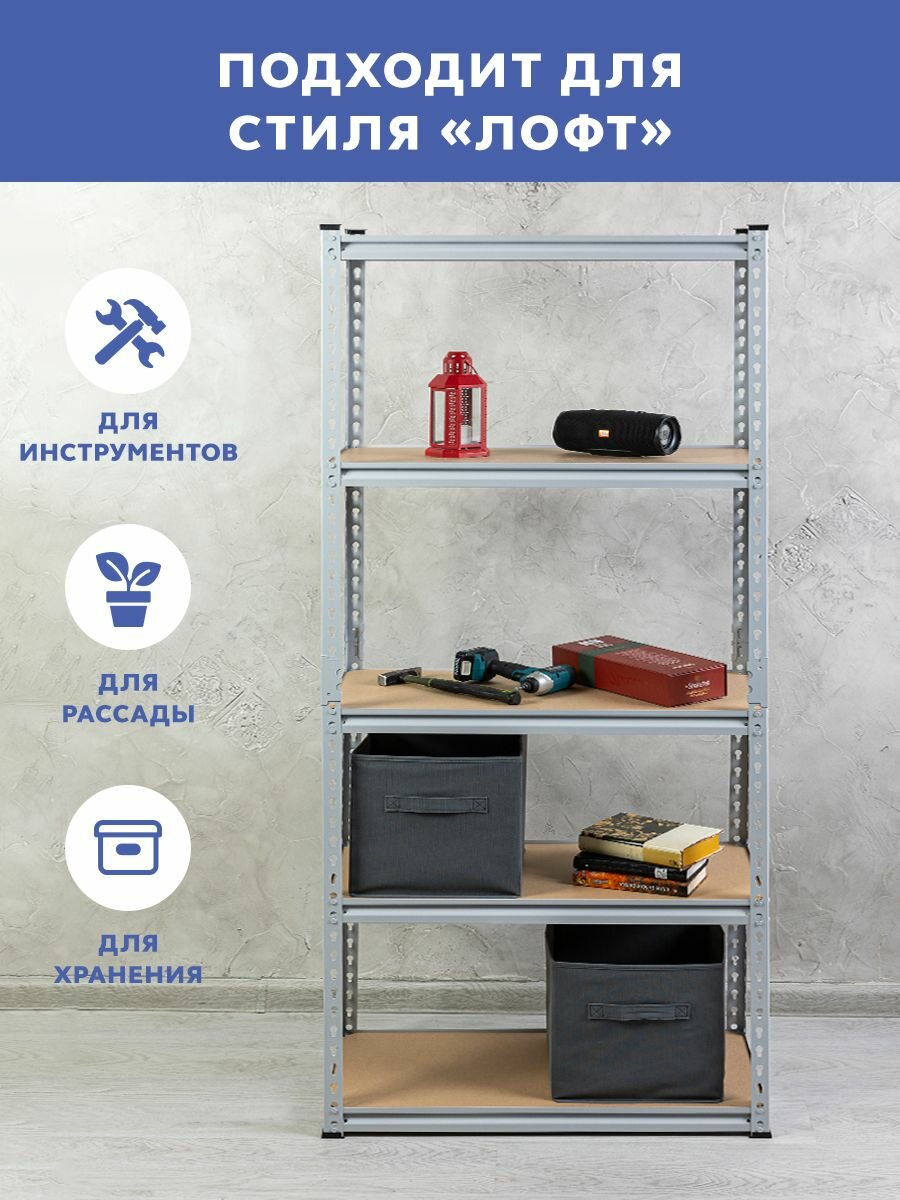Стеллаж металлический безболтовой GASTRORAG GR-003-7, 5 полок МДФ, размеры 180х90х40 см, этажерка для кухни, мебель лофт, система хранения для дома, дачи и гаража