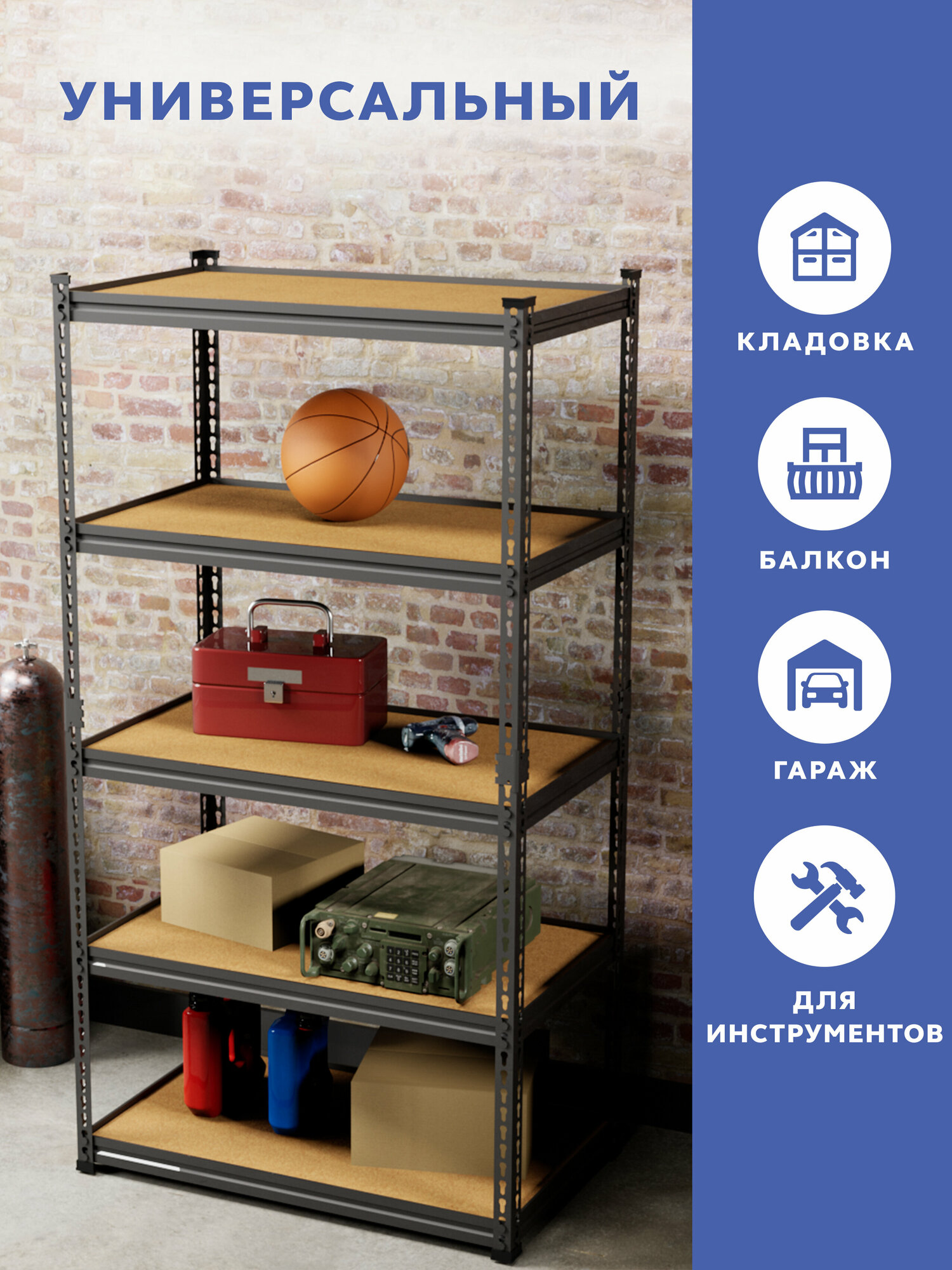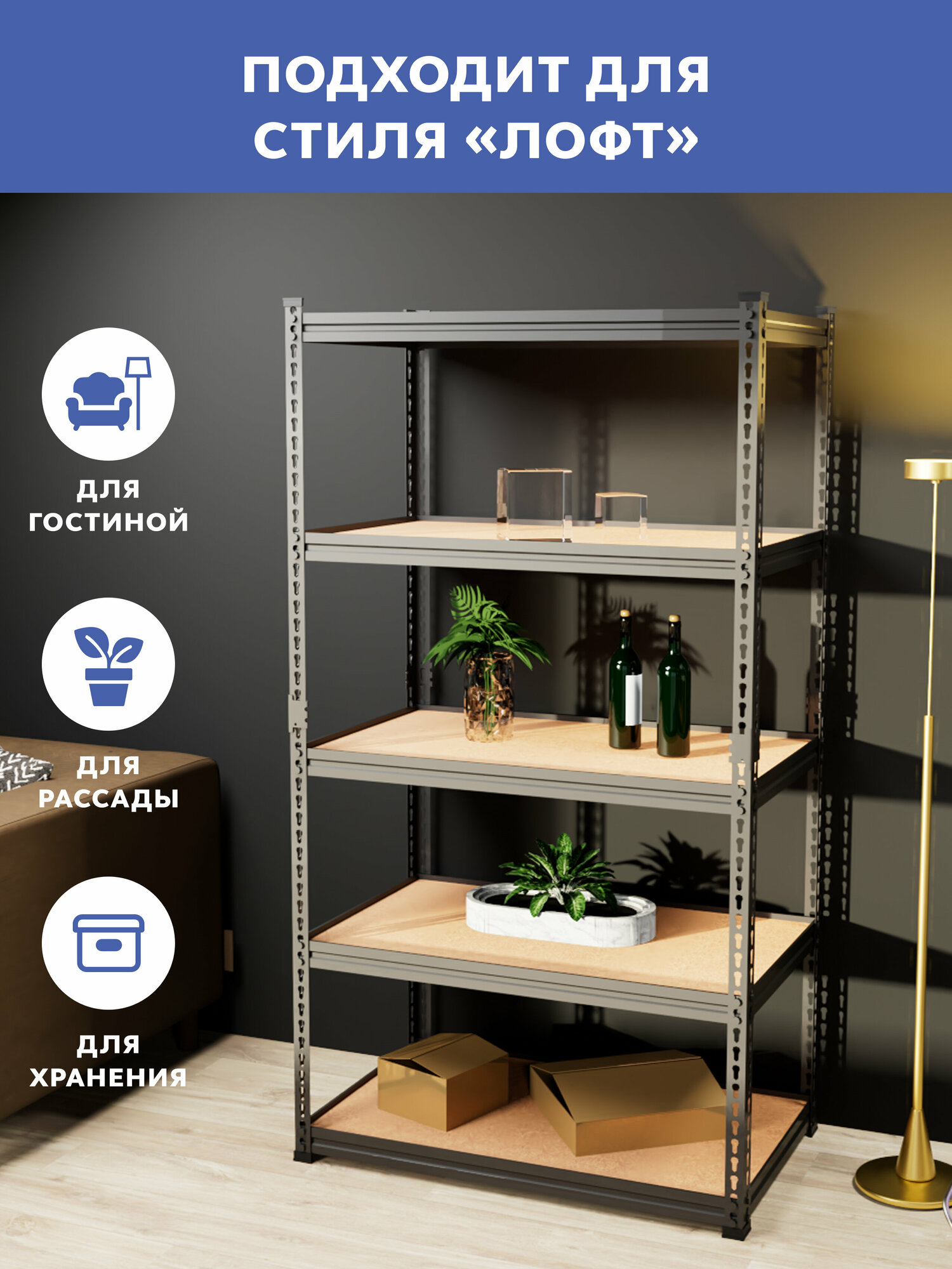 Стеллаж металлический безболтовой GASTRORAG GR-003-2, 5 полок МДФ, размеры 180х90х40 см, этажерка для кухни, мебель лофт, система хранения для дома, дачи и гаража