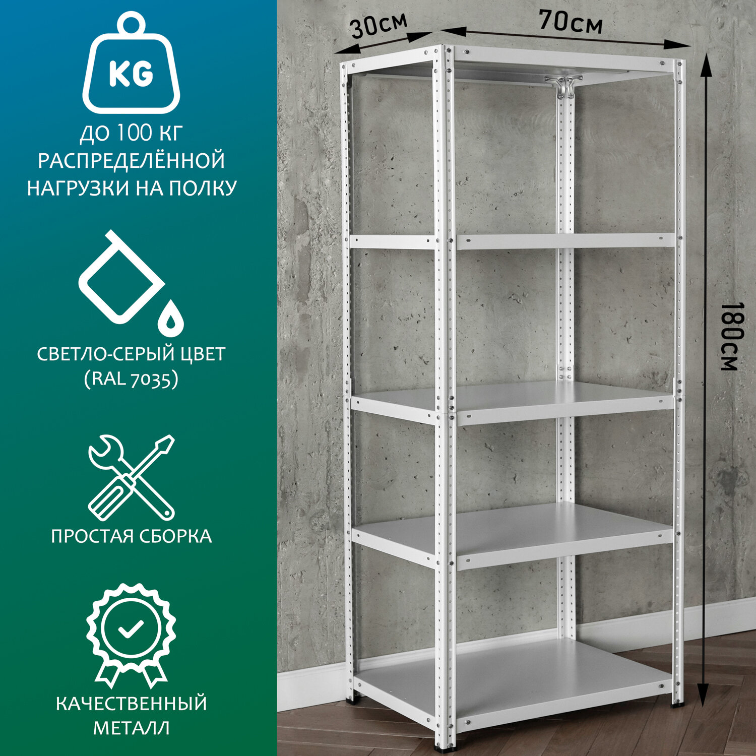 Стеллаж металлический 180х70х30 см, 5 полок интересное:
