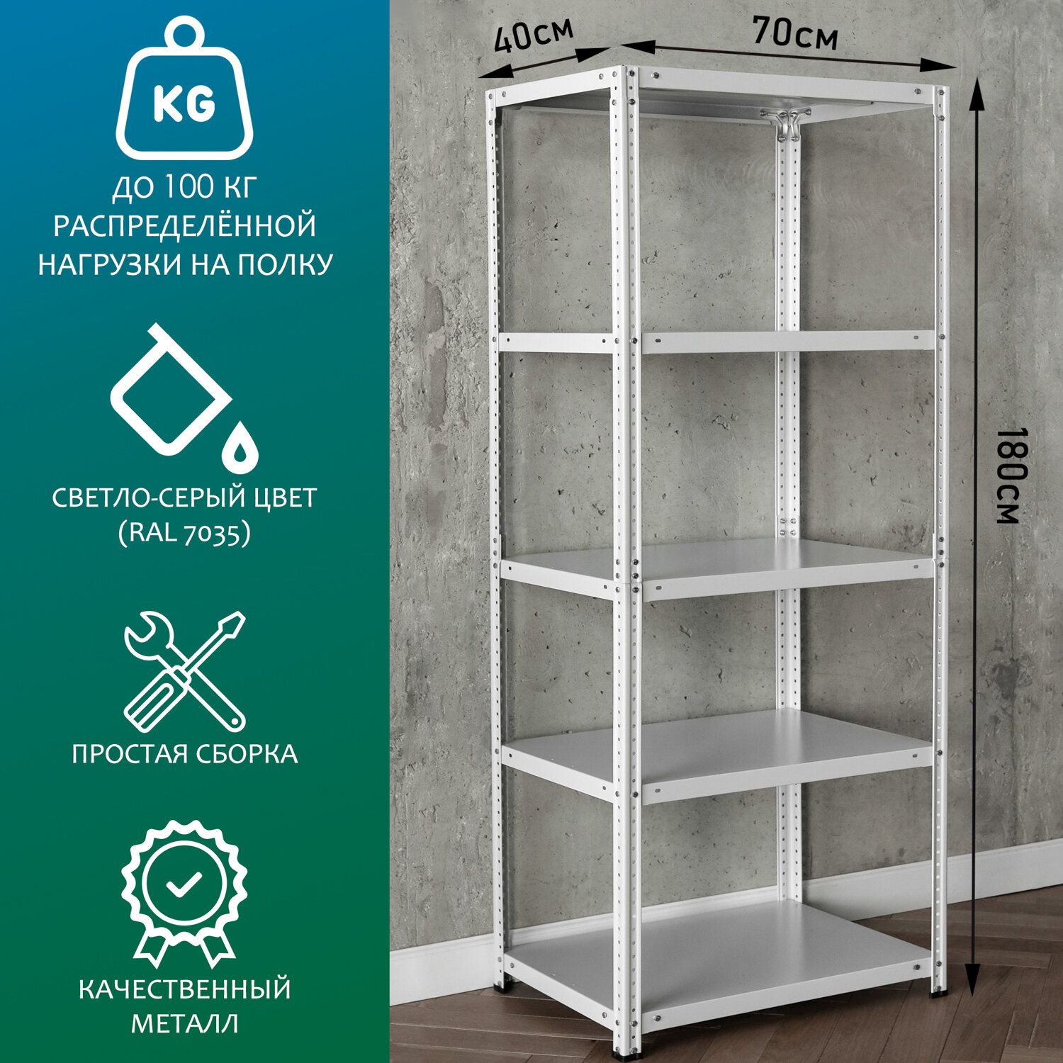 Купить Стеллаж металлический 180х70х40 см, 5 полок