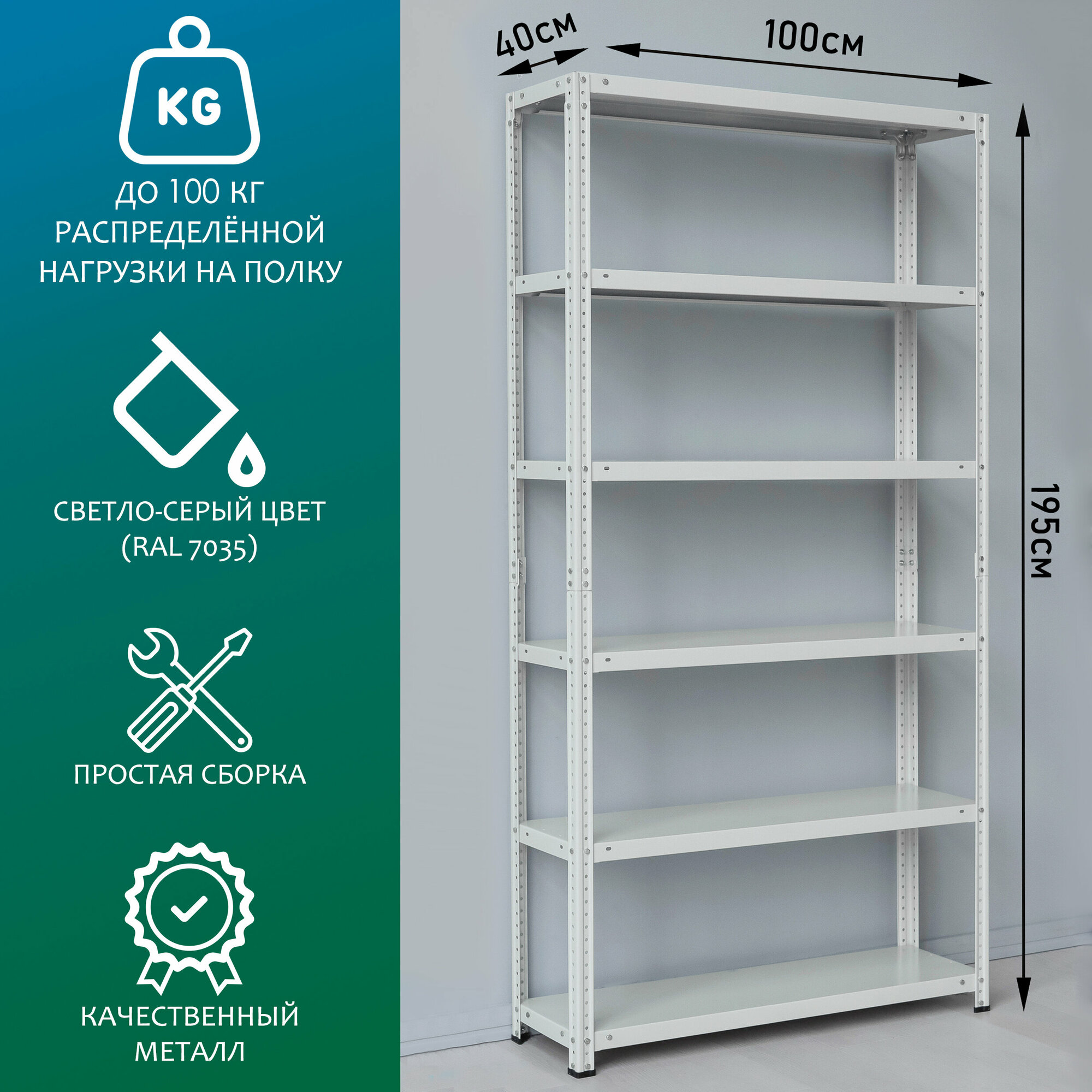 Купить Стеллаж металлический 195х100х40 см, 6 полок