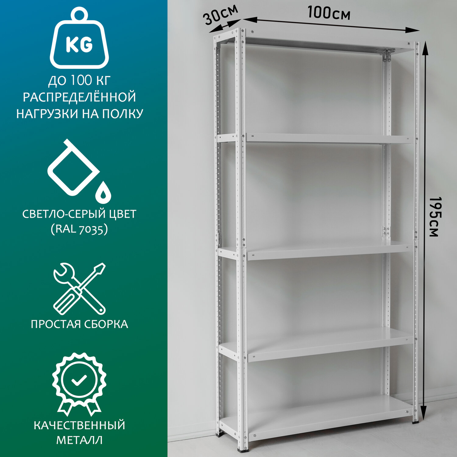 Купить Стеллаж металлический 195х100х30 см, 5 полок