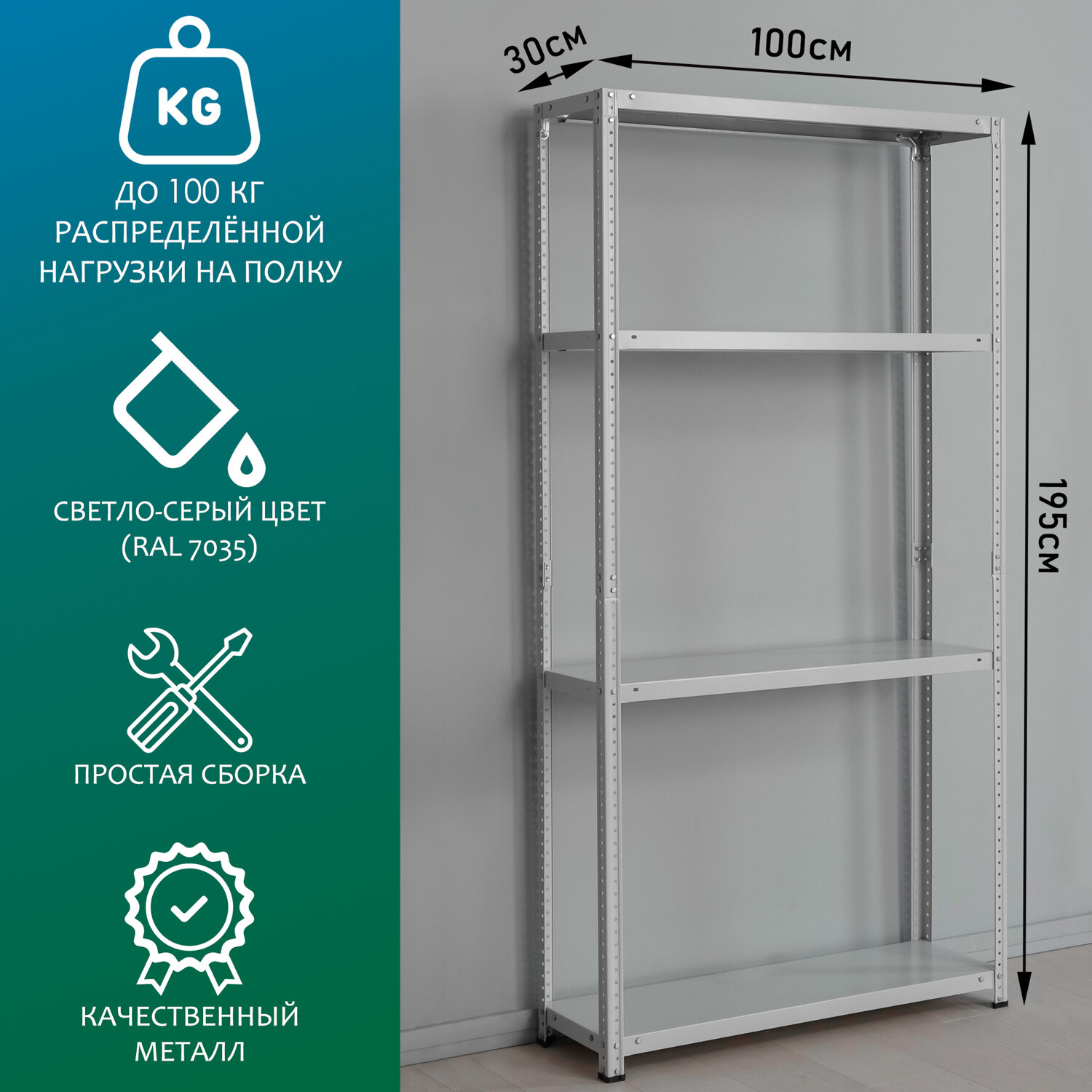 Купить Стеллаж металлический 195х100х30 см, 4 полки