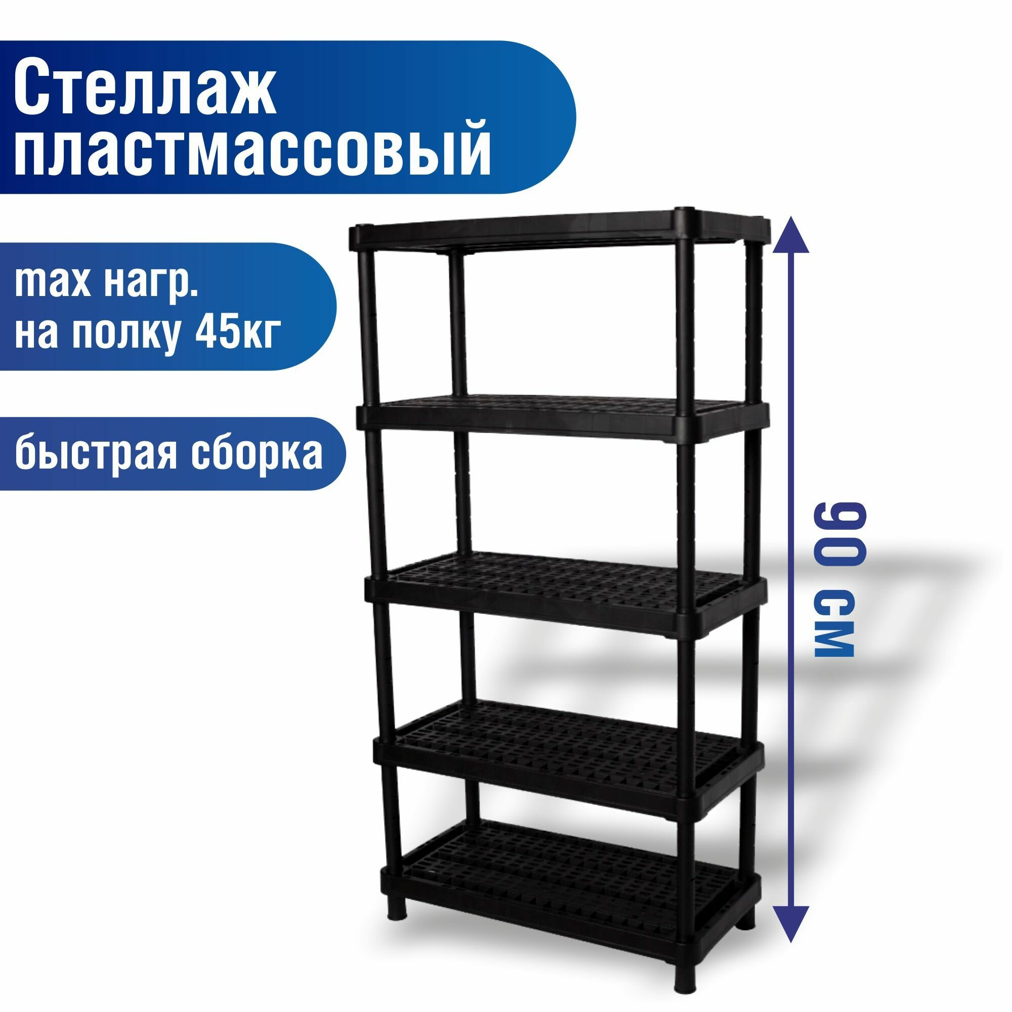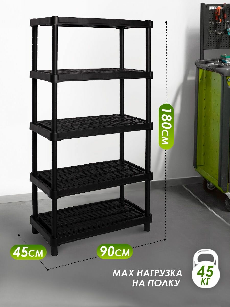 Полка универсальная, пластик, 5 секций, 90х45 см, вентилируемая, черная, Blocker, Expert, BR3805ЧР интересное: