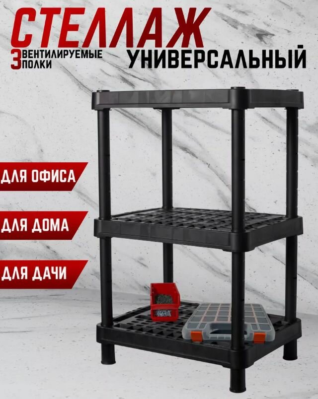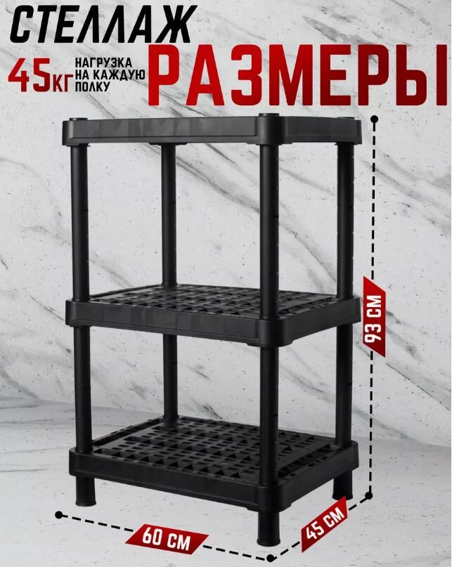 Стеллаж Blocker / Блокер Expert из полипропилена, черный, с 3 полками, размером 60х45х18.9см / этажерка