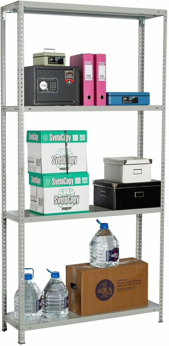 | Дополнительная информация | Предназначен для хранения документов и различных грузов в офисе, на складе, в архиве;Для вашей безопасности!!!: Отдельно стоящий стеллаж должен быть прикручен к несущей стене. Нагрузка полок должна быть равномерно распределенной. Загрузку стеллажа производить последовательно, начиная с нижней полки. |