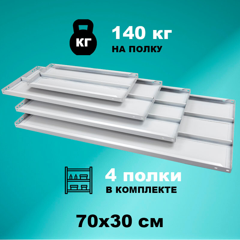 Купить Комплект полок для стеллажей СТМ-140 70x30 см (4 шт.), нагрузка до 140кг на полку