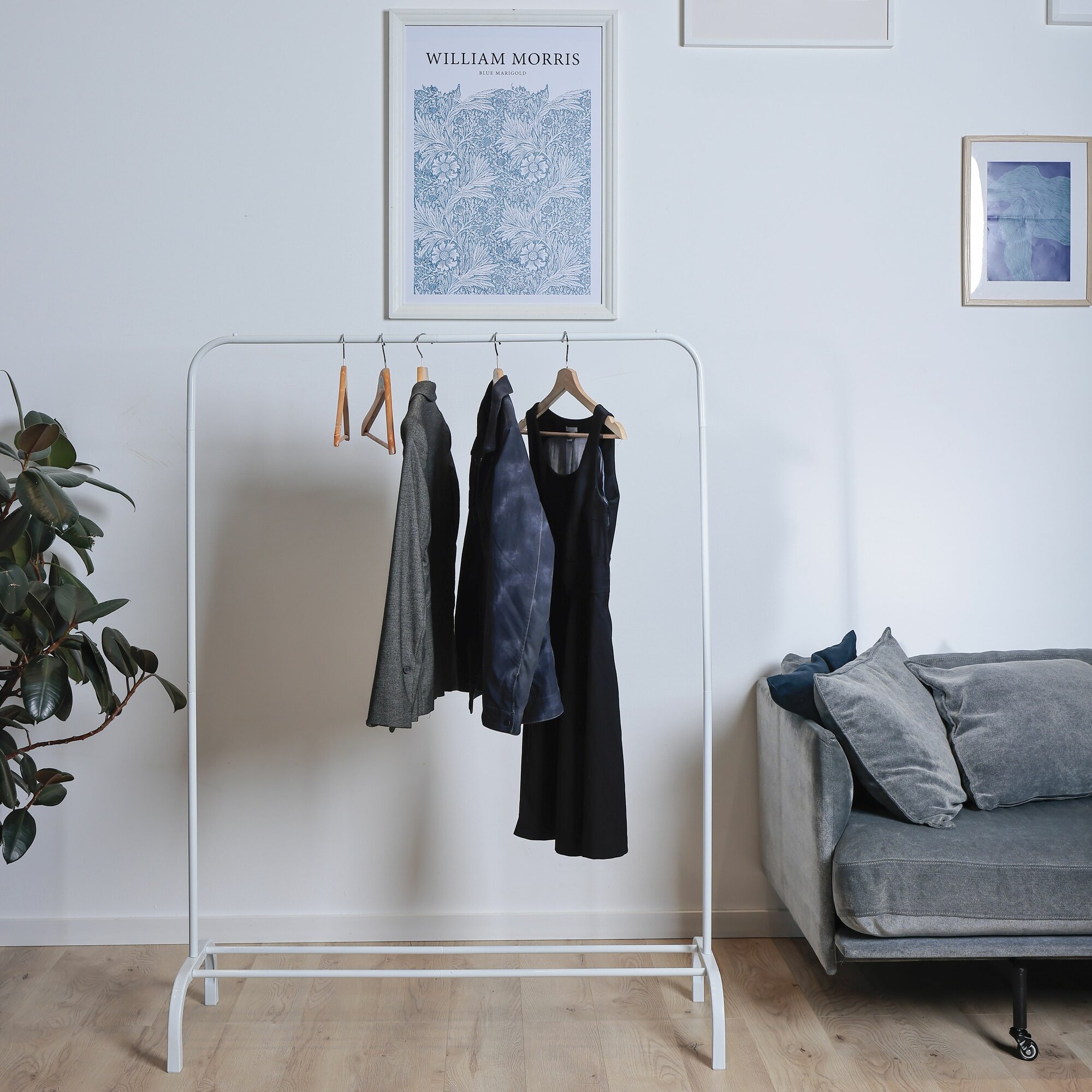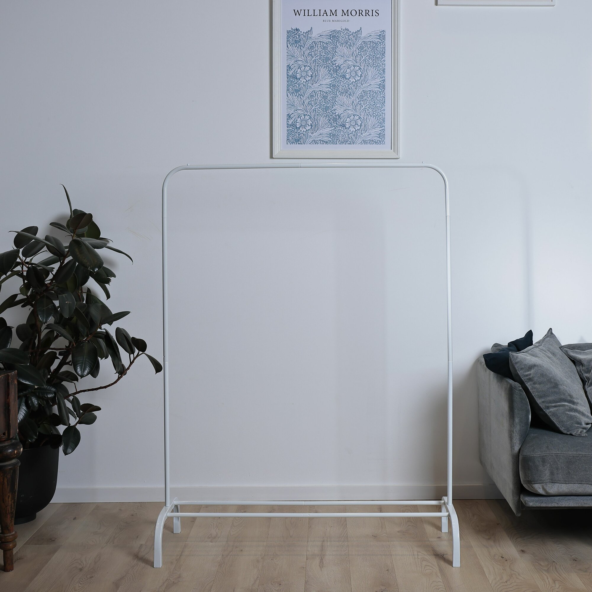 Вешалка напольная для одежды, гардероб в прихожую, вешалка-рейл белая металлическая 148х110х40 см интересное: