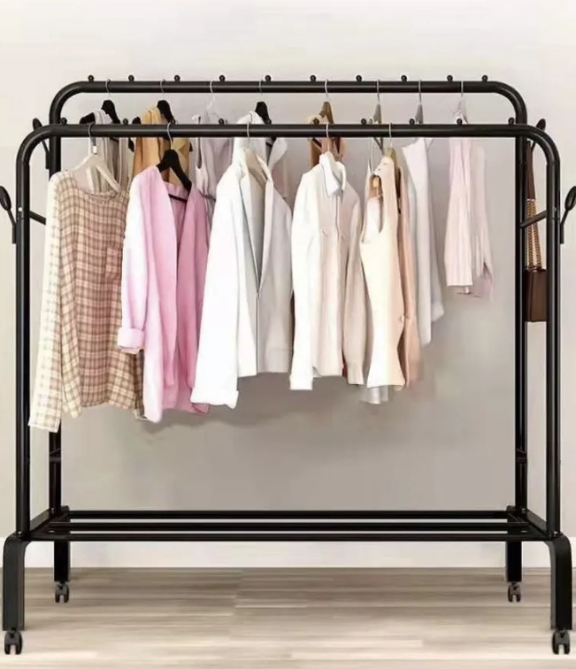 Вешалка напольная металлическая\ Двойная Вешалка в прихожую для одежды на колесиках интересное: