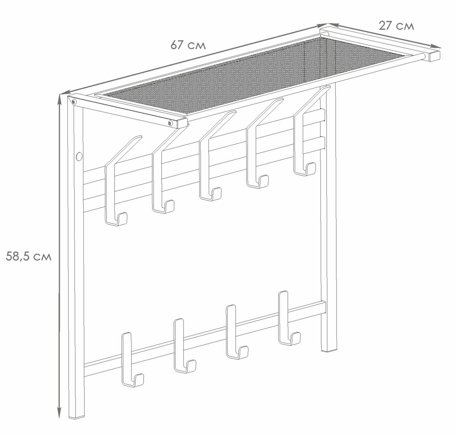 Вешалка настенная в прихожую «Торонто 22», с полкой, металл, 67×27×58.5 см, графит