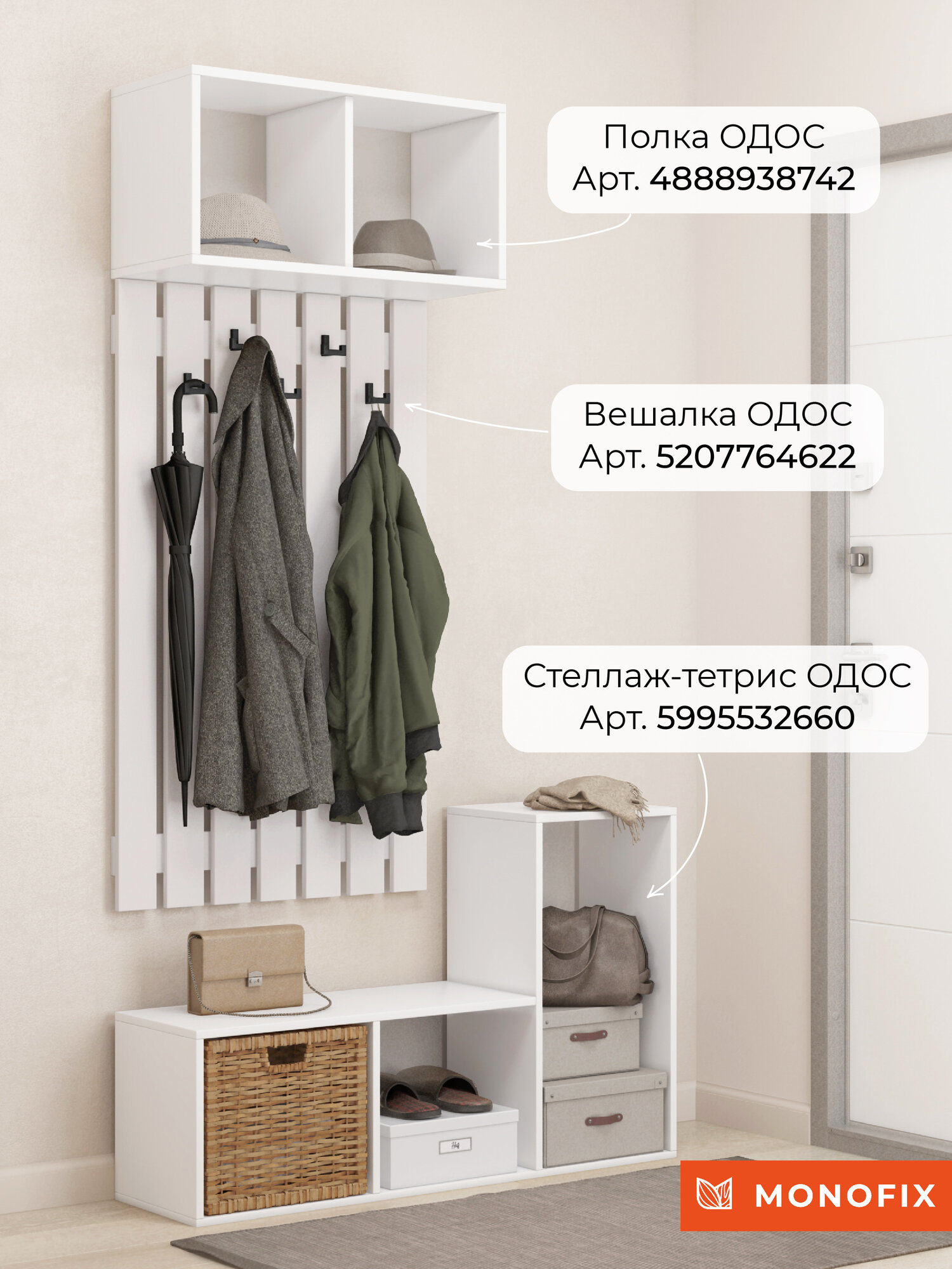 Вешалка настенная для одежды в прихожую, одос белая интересное: