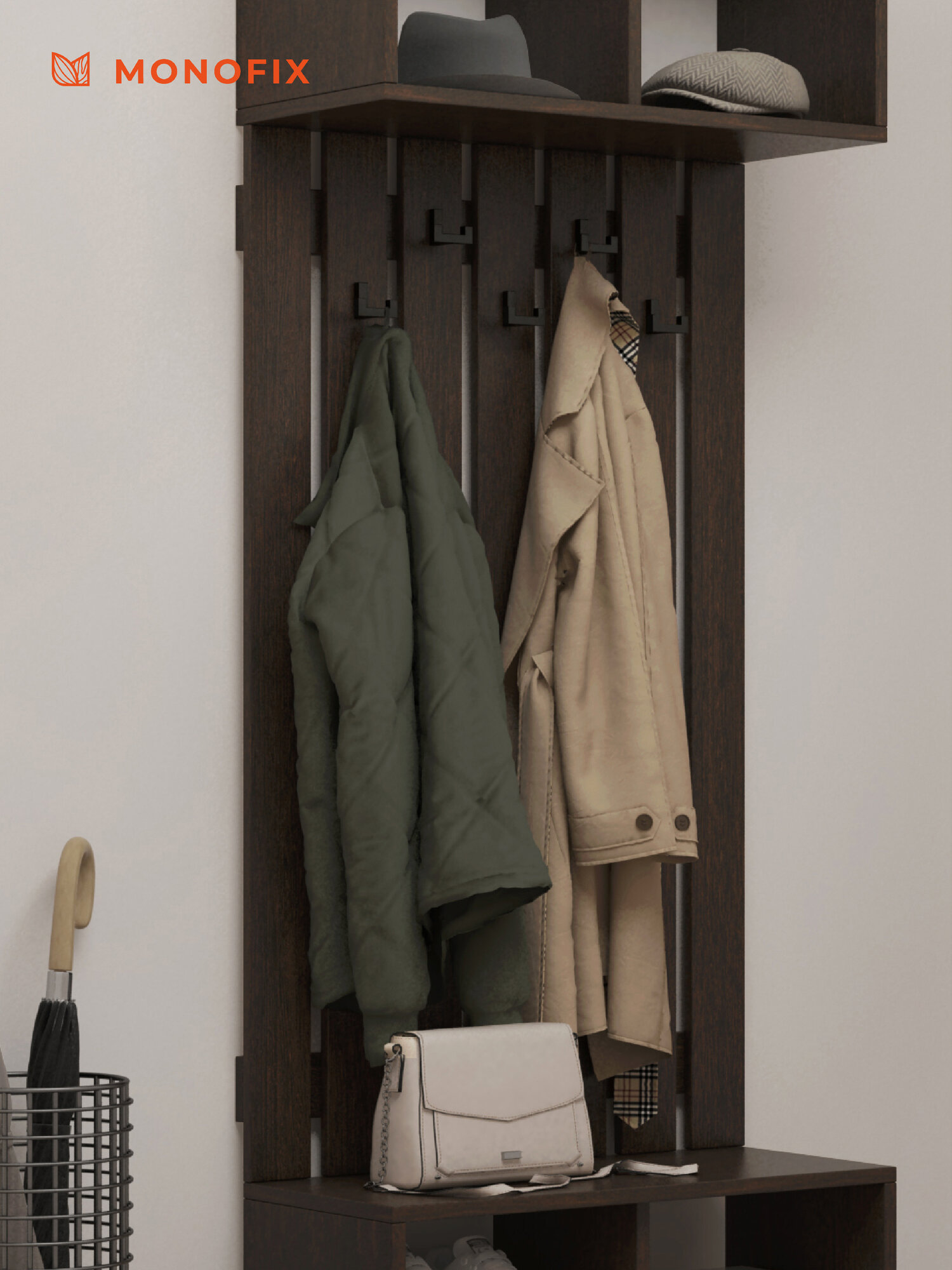 Вешалка настенная для одежды в прихожую, одос венге интересное: