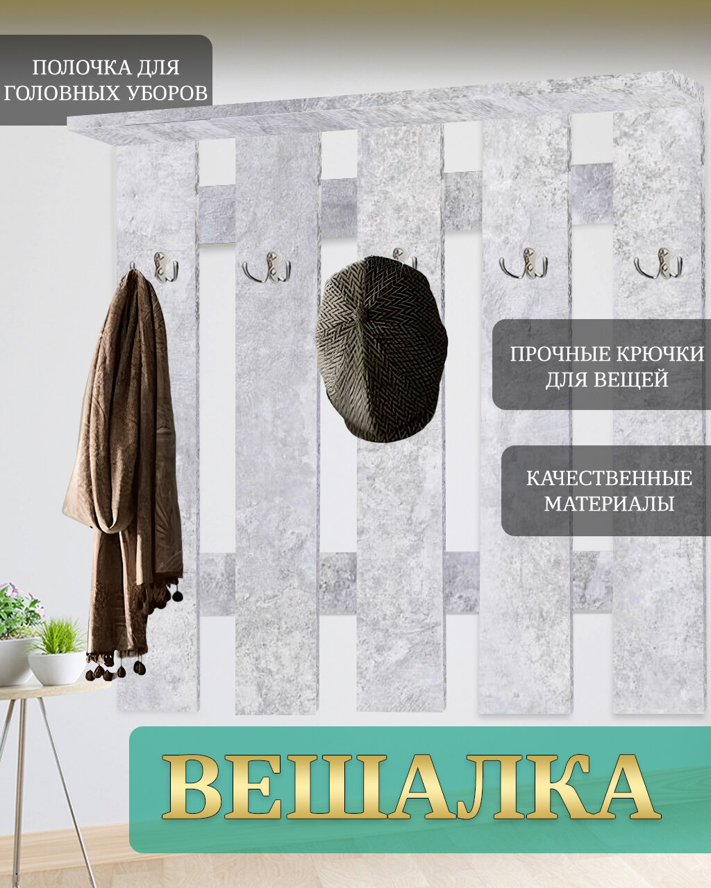 Вешалка настенная в прихожую 5 крючков Бетон интересное: