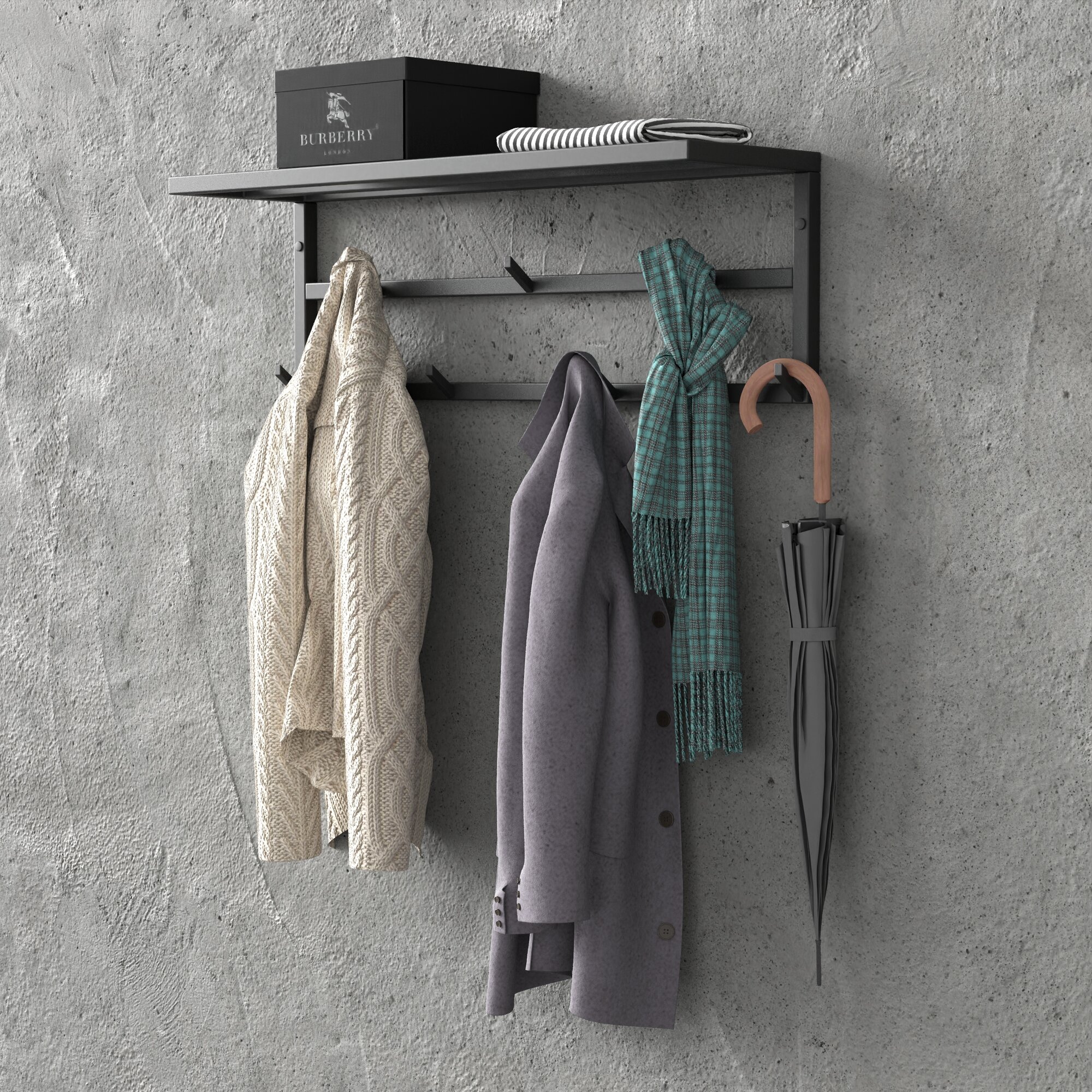 Купить Вешалка настенная металлическая с полкой DK_Loft черная