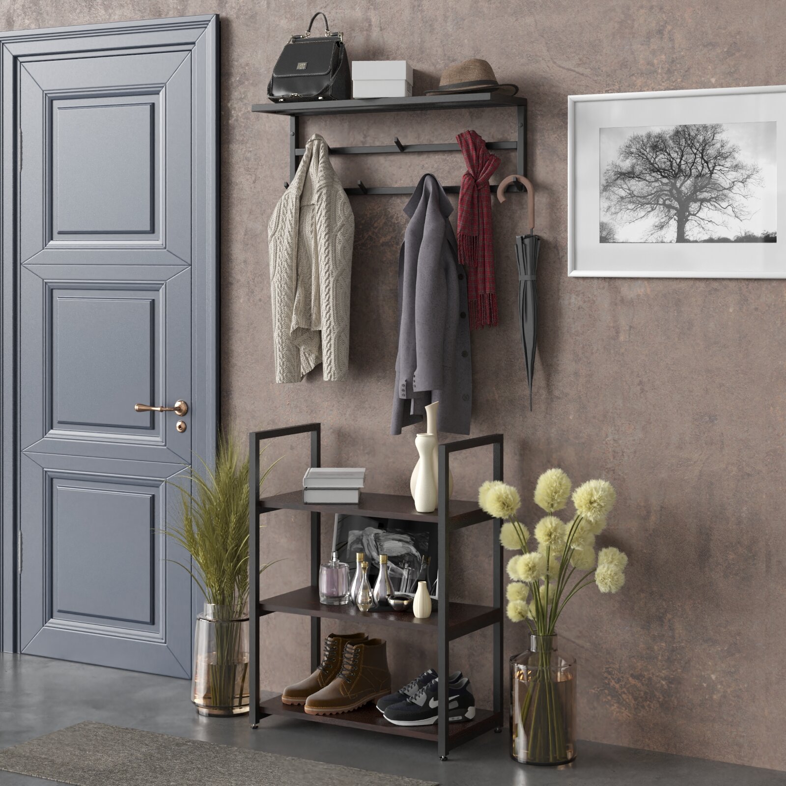 Вешалка настенная металлическая с полкой DK_Loft черная интересное: