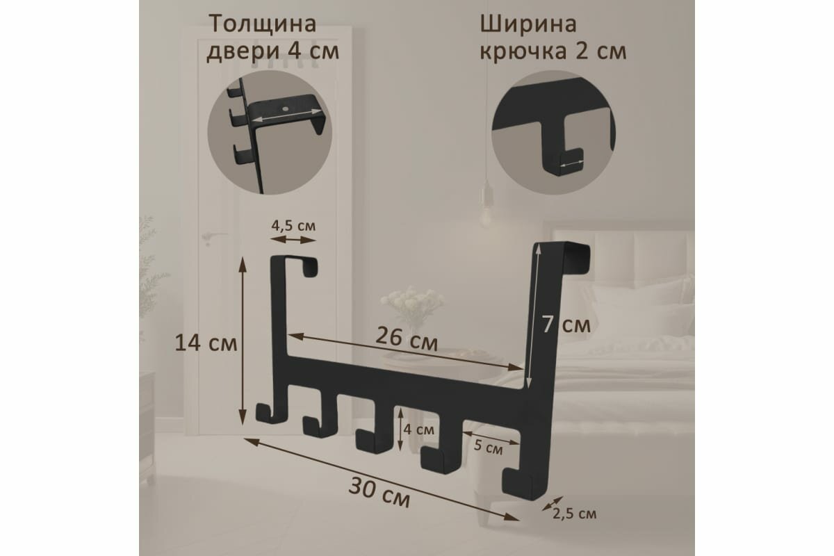 Вешалка на дверь навесная Borgo 5, черная интересное: