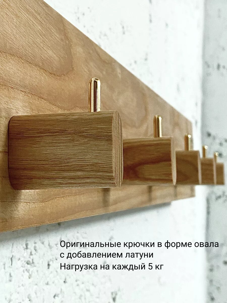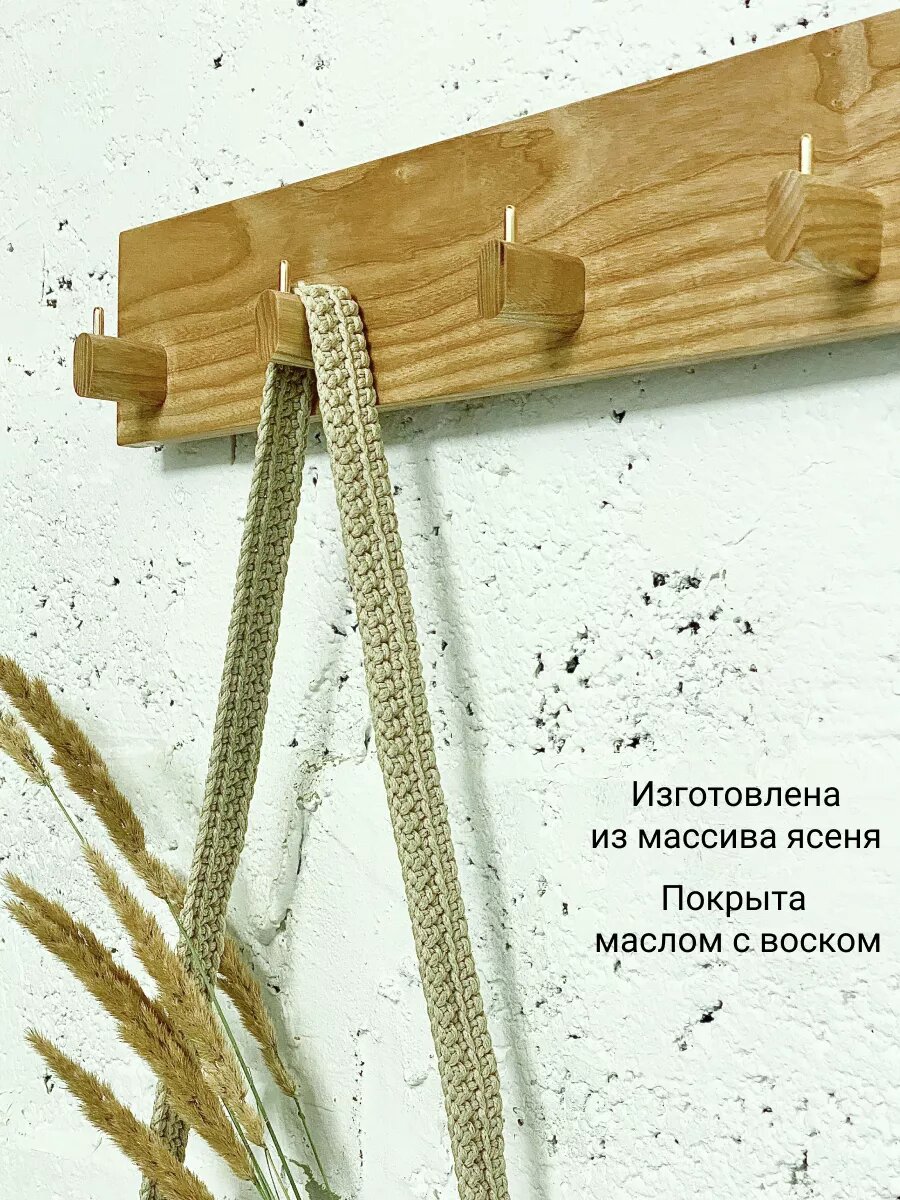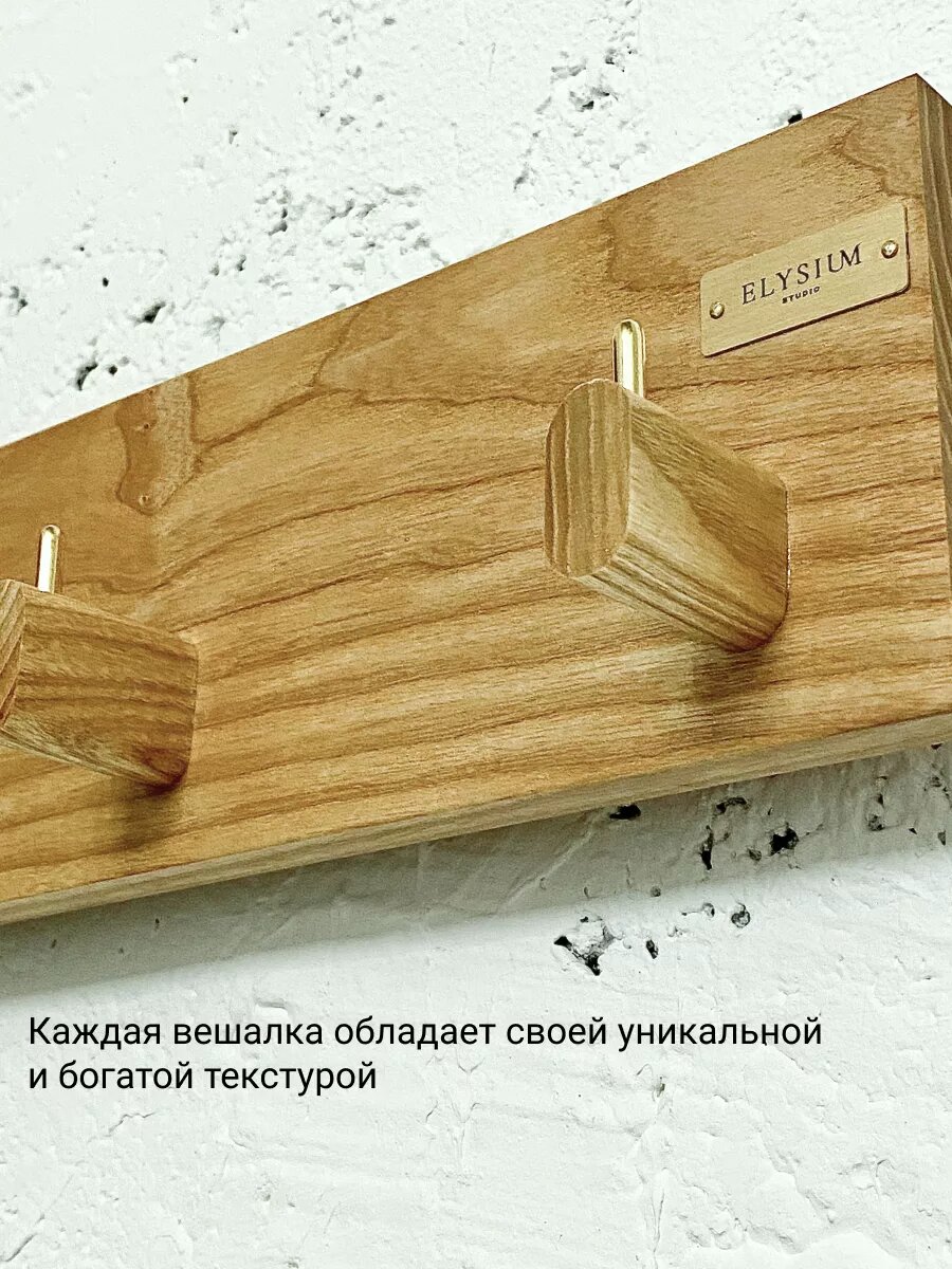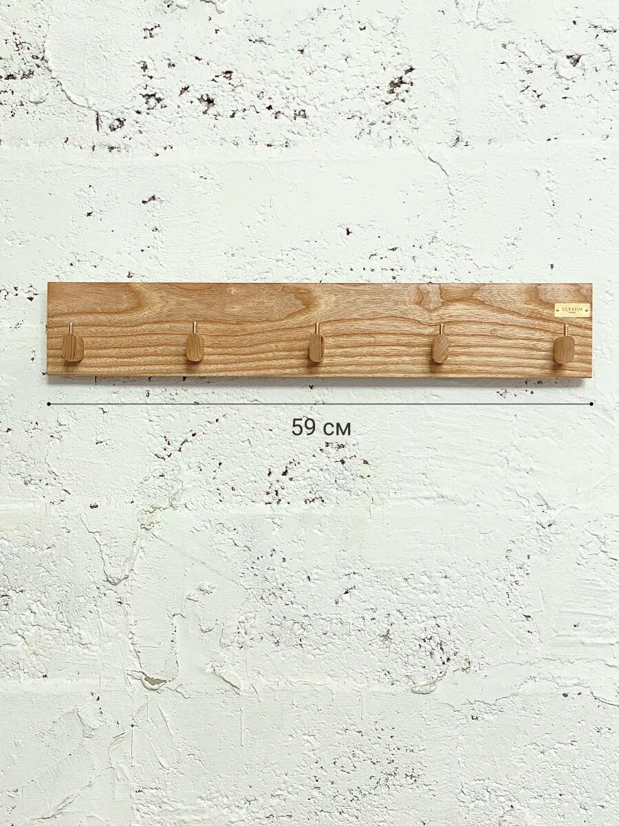Вешалка настенная из ясеня, вешалка деревянная Elysium studio для одежды в прихожую, 59*16*10 см