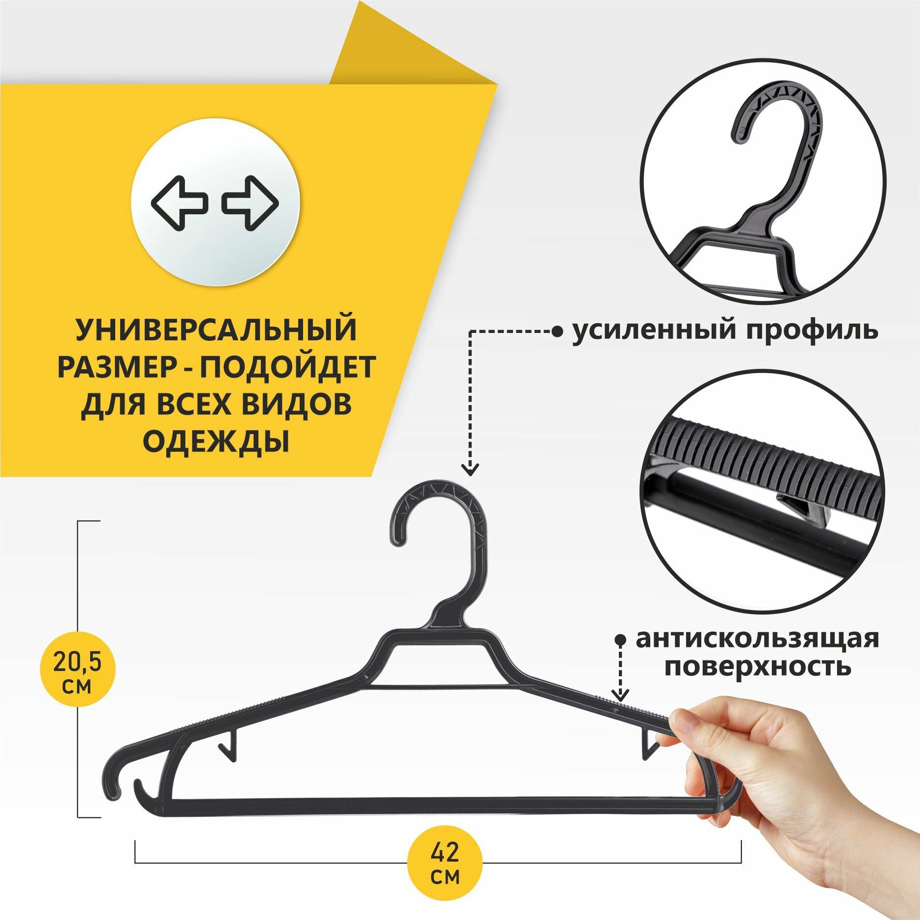 Купить Вешалка-плечики для одежды PlastOn пластиковая, усиленная, черная, набор 10 штук