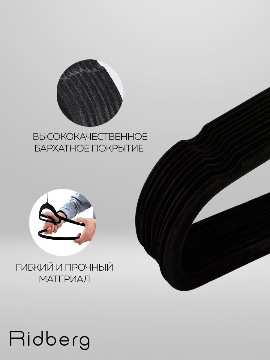Купить Вешалка-плечики для одежды Ridberg Velvet 50 шт. (Black)