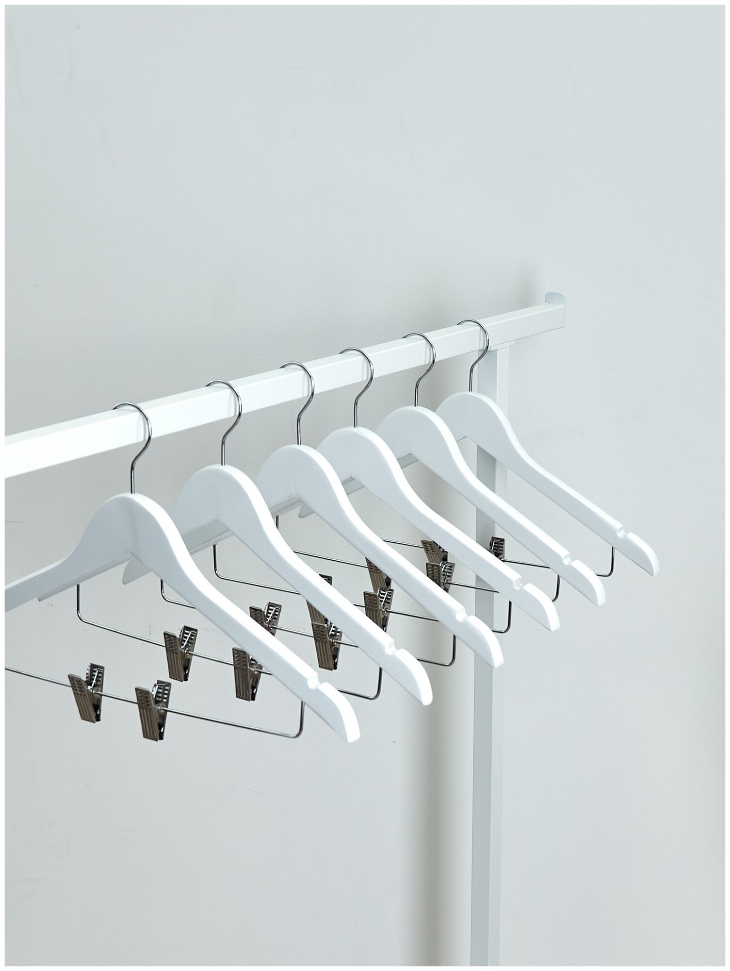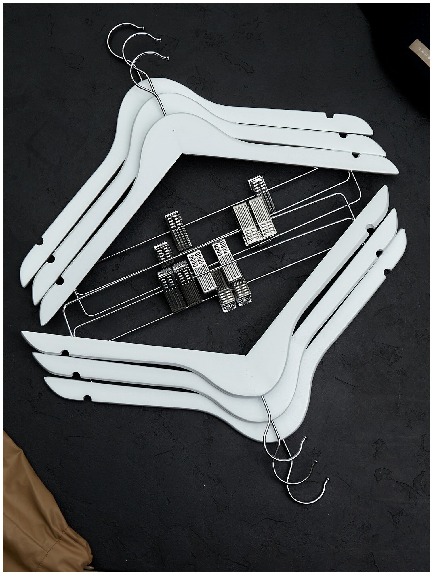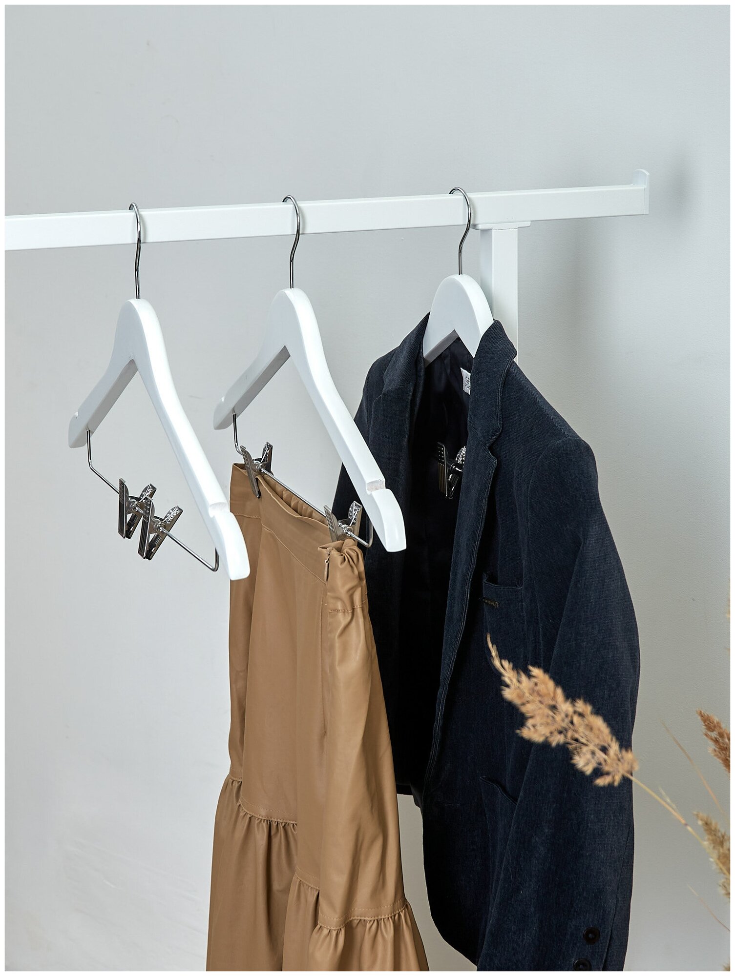 Вешалки-плечики для одежды, костюма, брюк и юбок с прищепками (зажимами) деревянные, L-450 мм, цвет белый, комплект 3 штуки интересное: