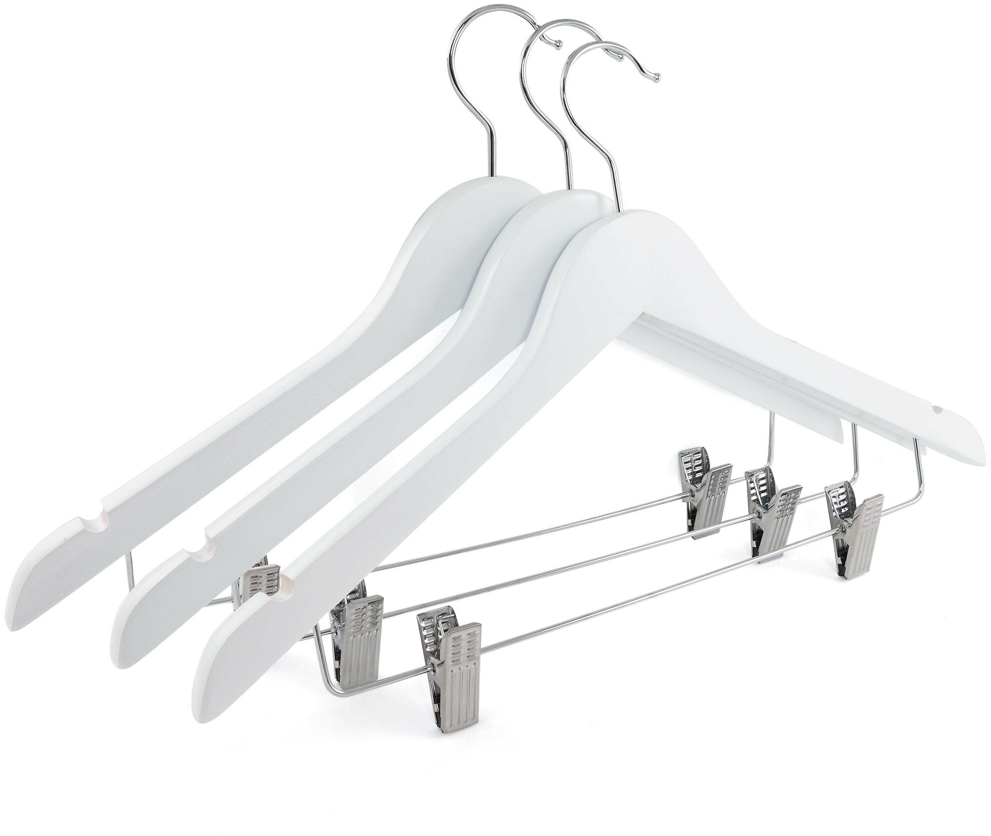 Купить Вешалки-плечики для одежды, костюма, брюк и юбок с прищепками (зажимами) деревянные, L-450 мм, цвет белый, комплект 3 штуки