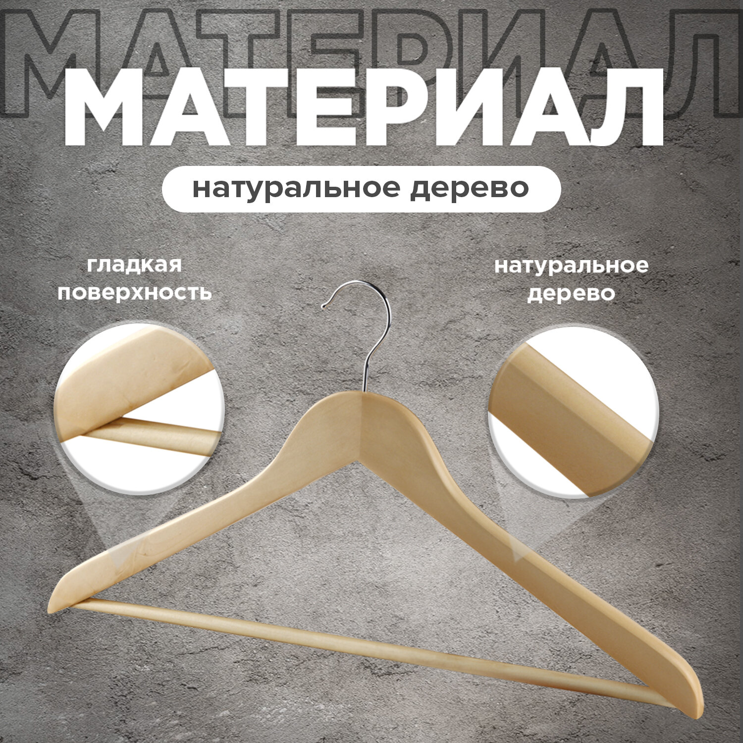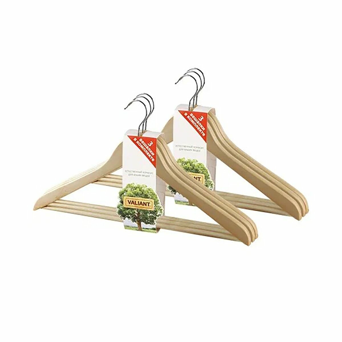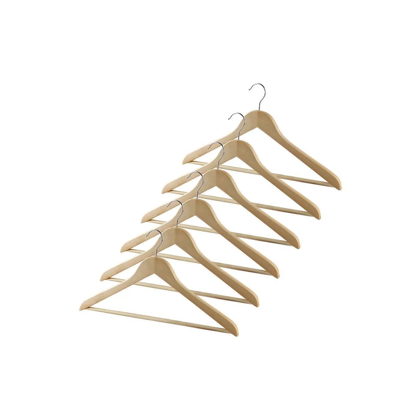 Купить Набор вешалок дерев, 6 шт., прямых, с переклад., 44.5*23*1.2 см, натур. цвет