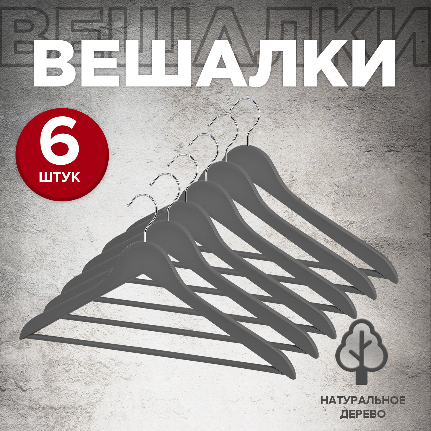 СохранитьНабор вешалок дерев., 6 шт., прямых, с переклад., 44.5*23*1.2 см, цвет серый, JAPANESE BLACK интересное: