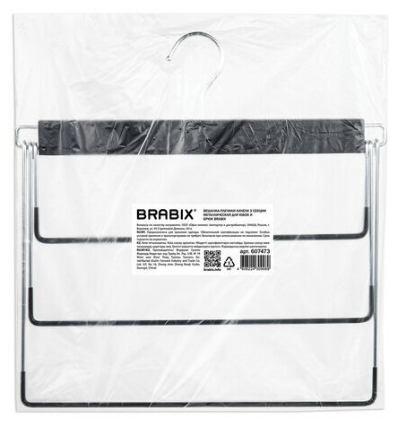 Вешалка-плечики для хранения одежды / вещей / брюк / костюма качели 3 секции металлическая, Пвх-покрытие, Brabix, 607473