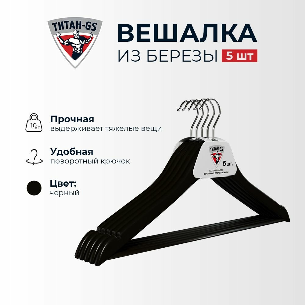 Вешалки плечики из натурального дерева Титан-GS в наборе 5 шт черная 44.5*1.2 см интересное: