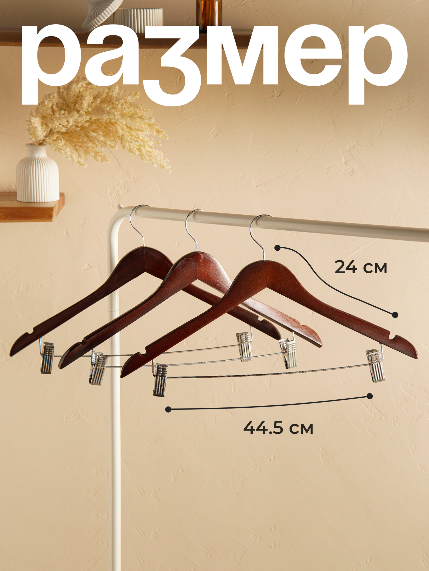 Плечики - вешалки для брюк и юбок Доляна, 44,5×24 см, 3 шт, с зажимами, деревянная сорт В, цвет коричневый интересное: