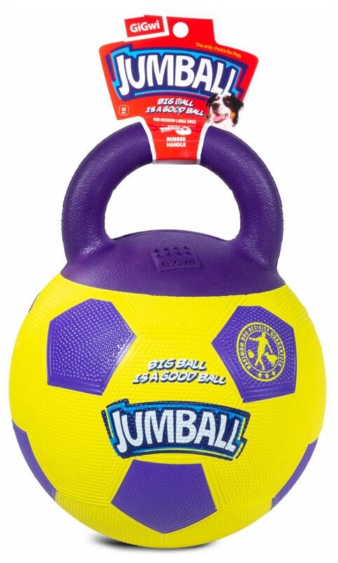 Gigwi игрушка для собак Мяч футбольный c ручкой желтый 26см, серия JUMBALL