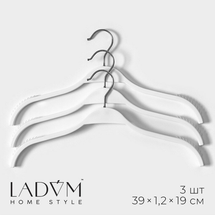 Плечики для одежды антискользящие, набор 3 шт LaDо́m Soft-touch, 41,5×21,5×1,1 см