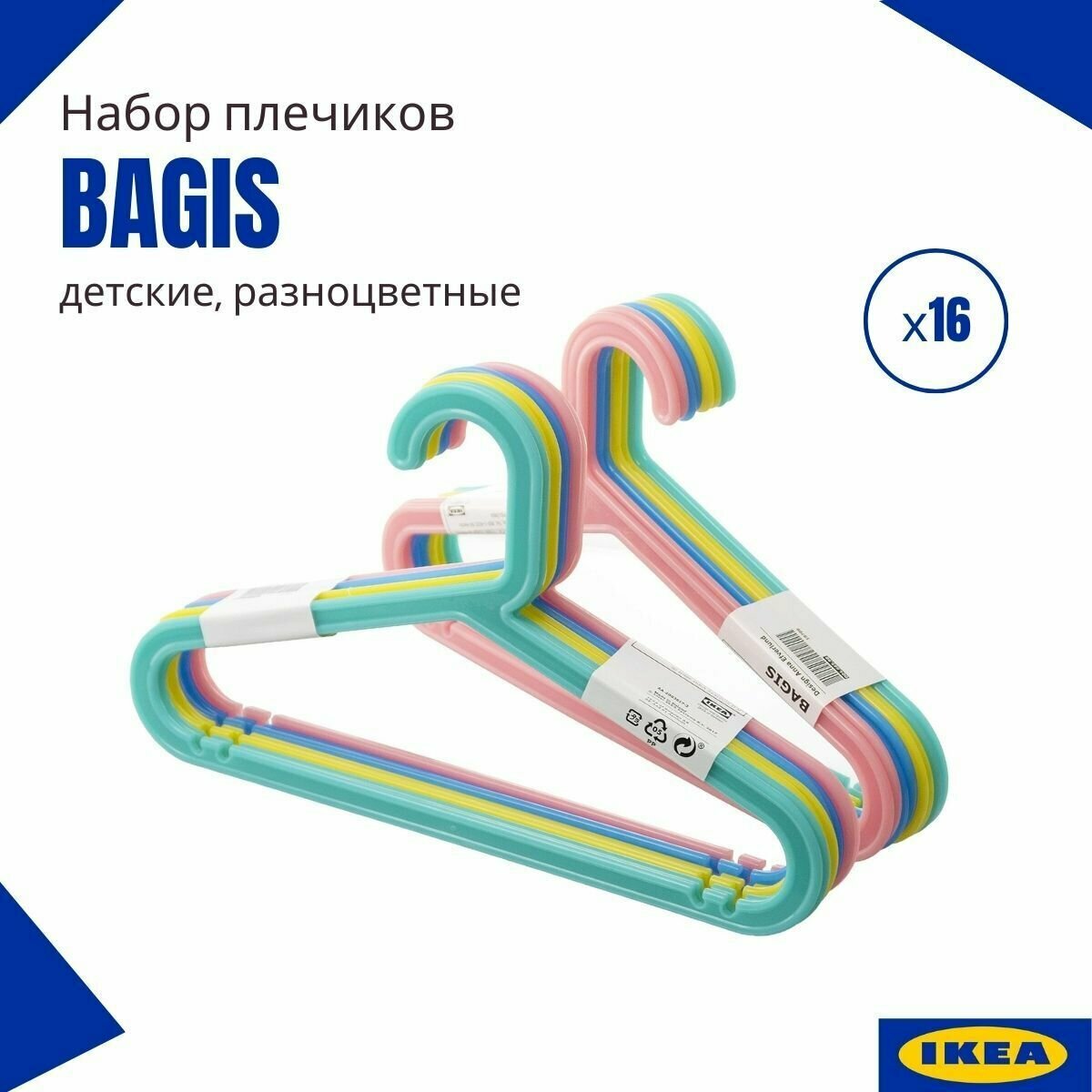 Купить Плечики багис икеа, вешалки детские IKEA, набор, плечики детские для одежды, вешалки, разноцветные, 16 шт. Вешалки детские для одежды
