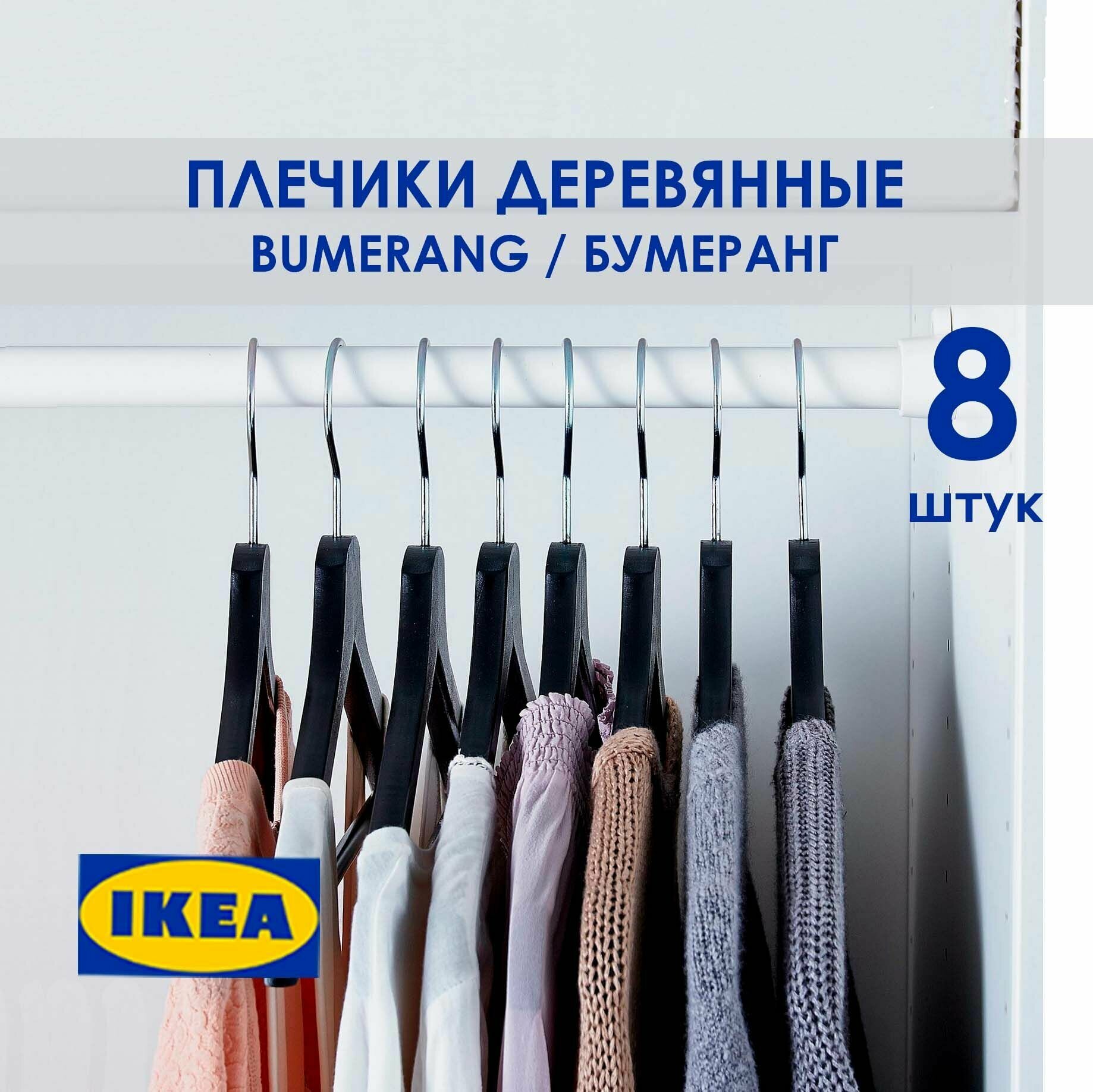 Купить Плечики BUMERANG IKEA, черные. Плечики для одежды набор. Вешалки деревянные. Бумеранг икеа 8 шт