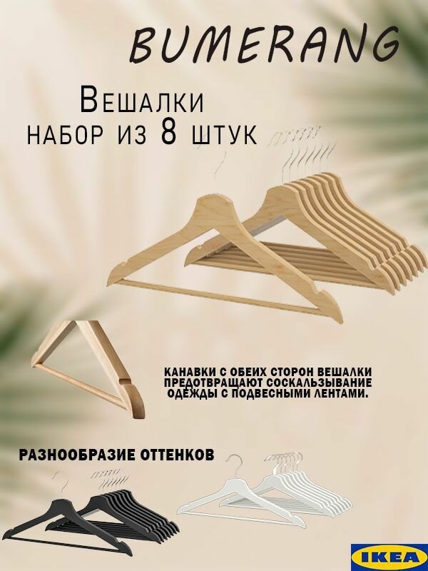 Плечики BUMERANG IKEA (Бумеранг икеа), плечики для одежды набор, вешалки деревянные, 8 шт
