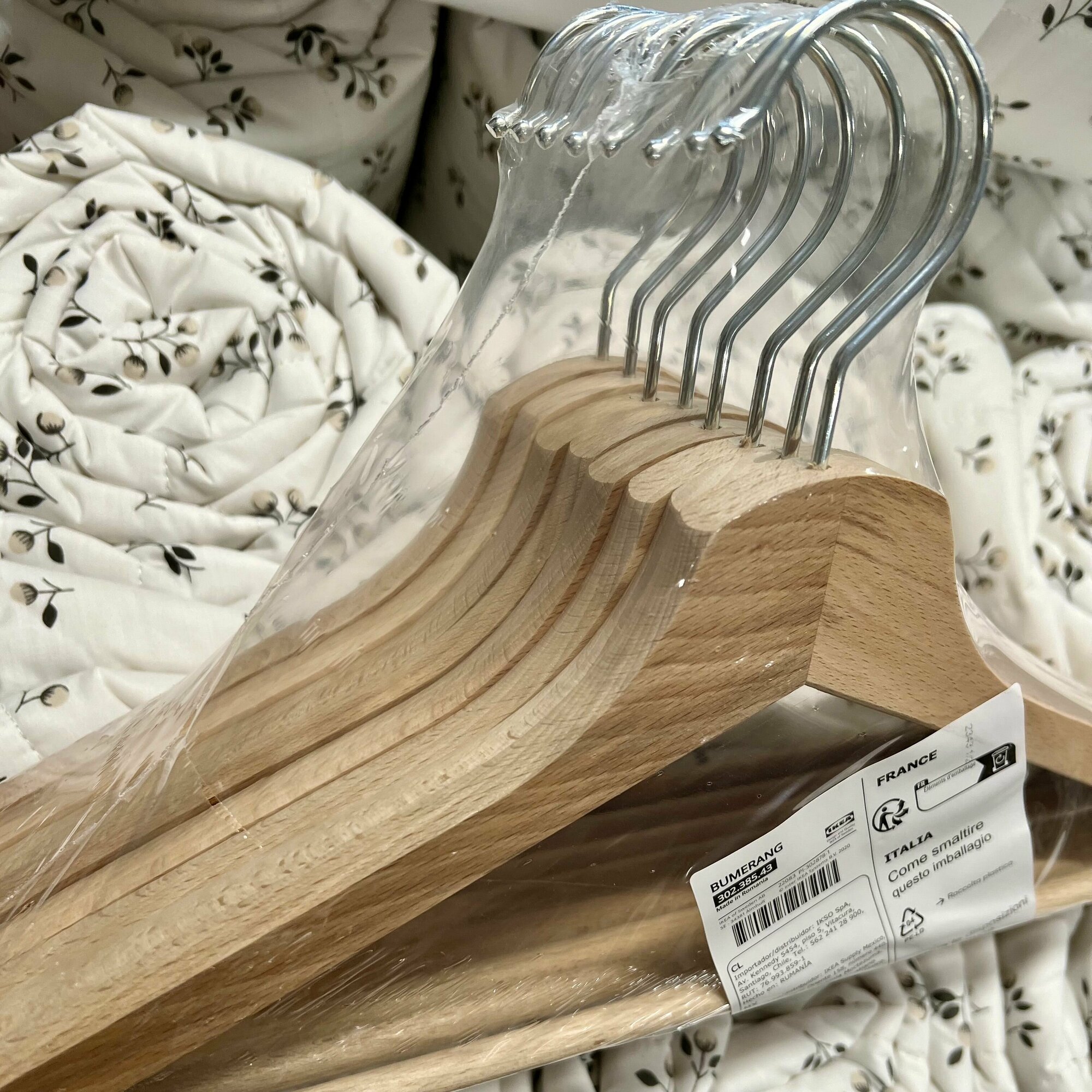 Купить Плечики икеа Бумеранг, натуральный цвет, набор вешалок для одежды. Деревянные вешалки IKEA BUMERANG, 8 шт