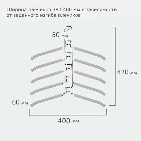 Вешалка-плечики Brabix трансформер, 5 плечиков, металл с покрытием, серые