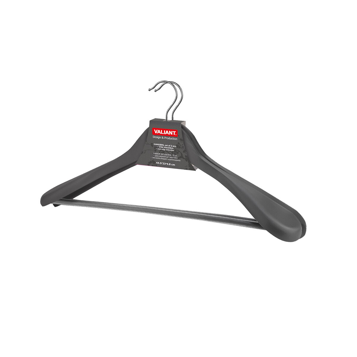 Вешалки для одежды Valiant Japanese Black, деревянные, 44,5 x 23 x 5,8 см, серые, набор 2 шт интересное: