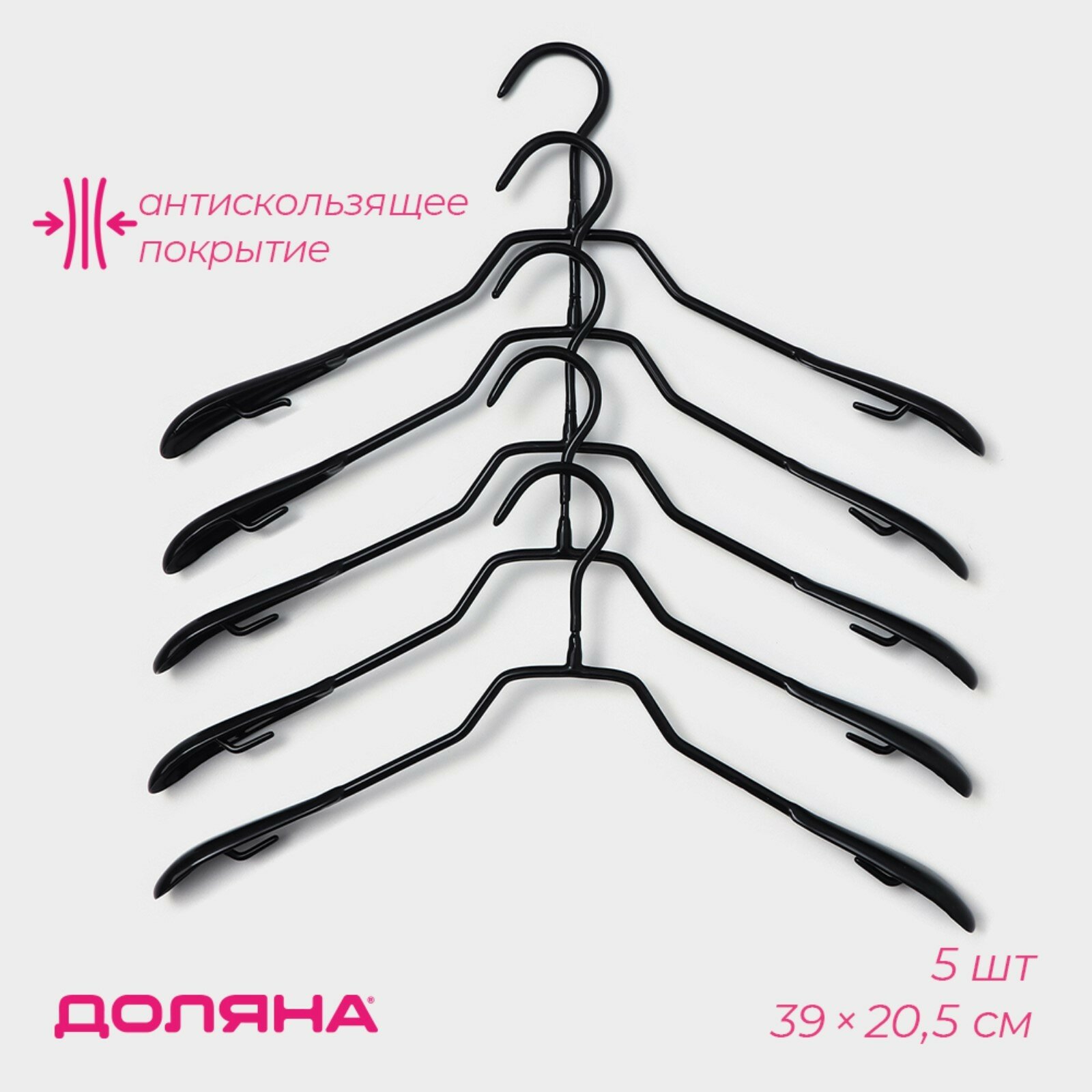 Плечики - вешалки для одежды антискользящие, набор 5 шт, 39×20,5 см, металл с ПВХ покрытием, цвет белый