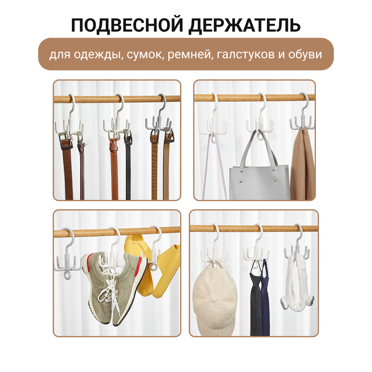Вешалка органайзер с крючками для ремней и галстуков, шарфов, шапок и аксессуаров, 360 градусов, белый, Zur-Kibet интересное:
