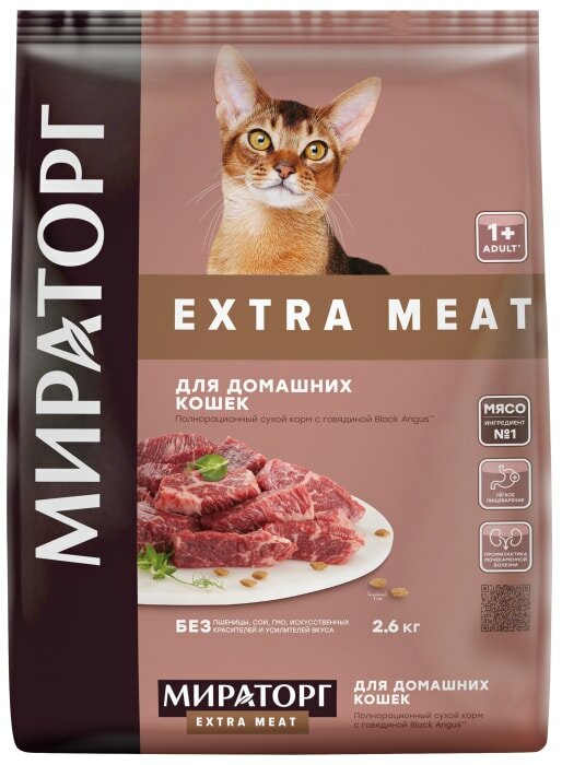 Купить Сухой корм Мираторг EXTRA MEAT с говядиной Black Angus для домашних кошек старше 1 года 2,6 кг