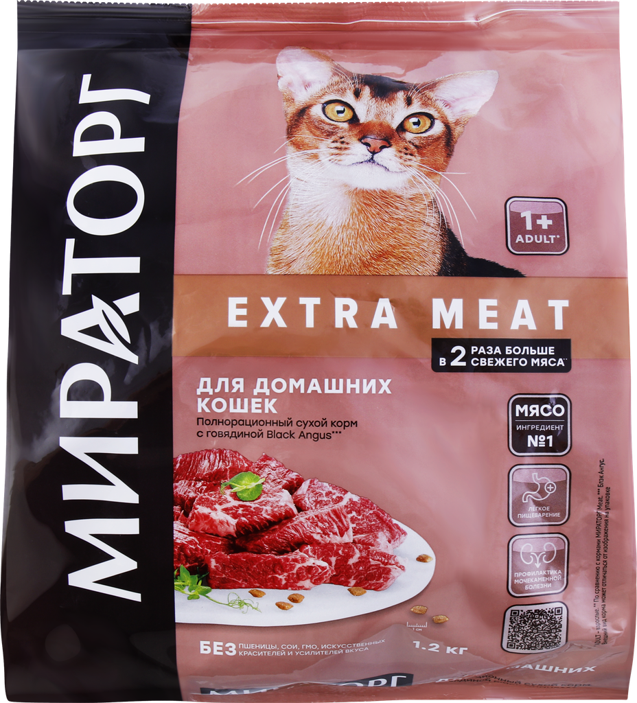 Сухой корм мираторг EXTRA MEATдля взрослых кошек живущих дома с говядиной Black Angus (1,2 кг)