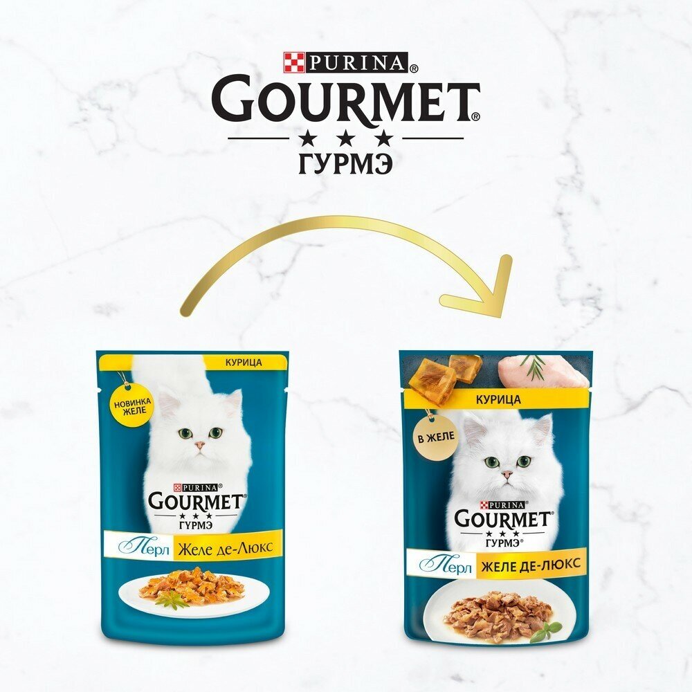 Гурмэ перл желе де-люкс для взрослых кошек с курицей в желе пауч 75 гр NEW 75 гр х 10 шт