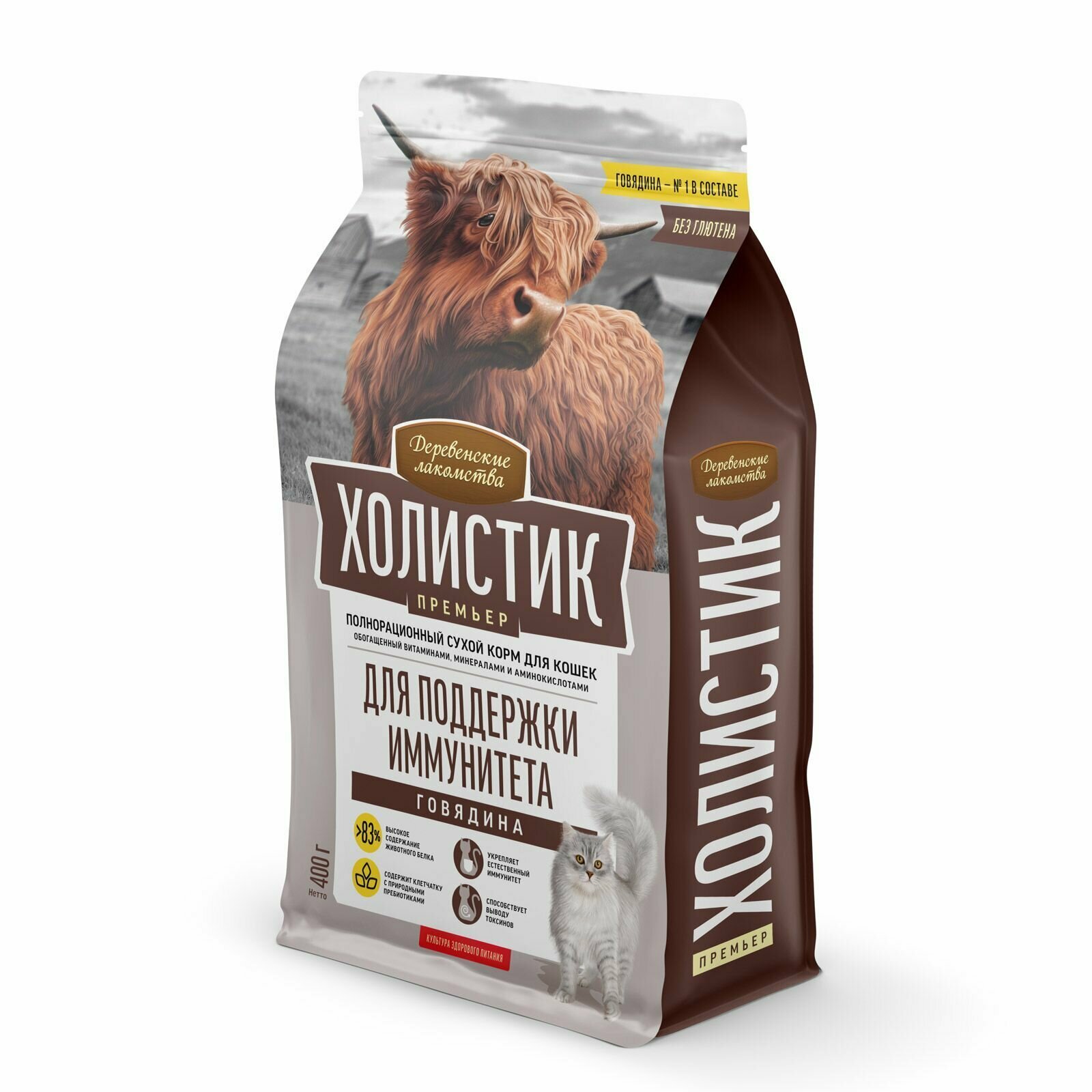 Деревенские Лакомства Холистик Премьер - Сухой корм для поддержки иммунитета кошек с говядиной (2 кг)