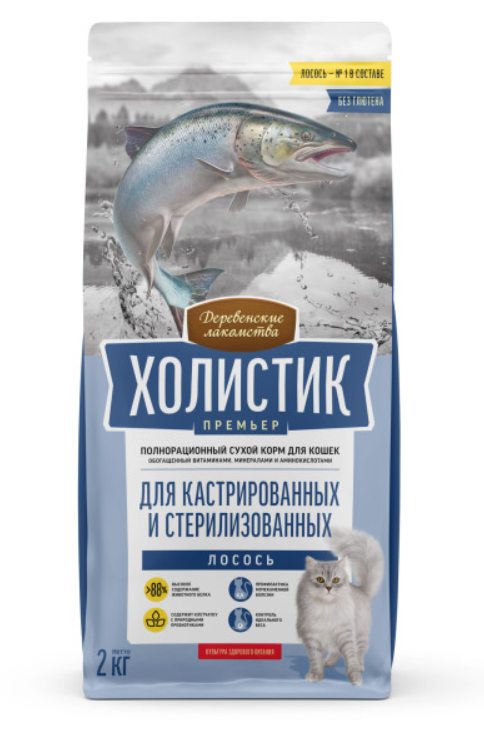 Деревенские лакомства 79213249 Холистик Премьер сухой корм для кастрированных и стерилизованных кошек Лосось 2кг